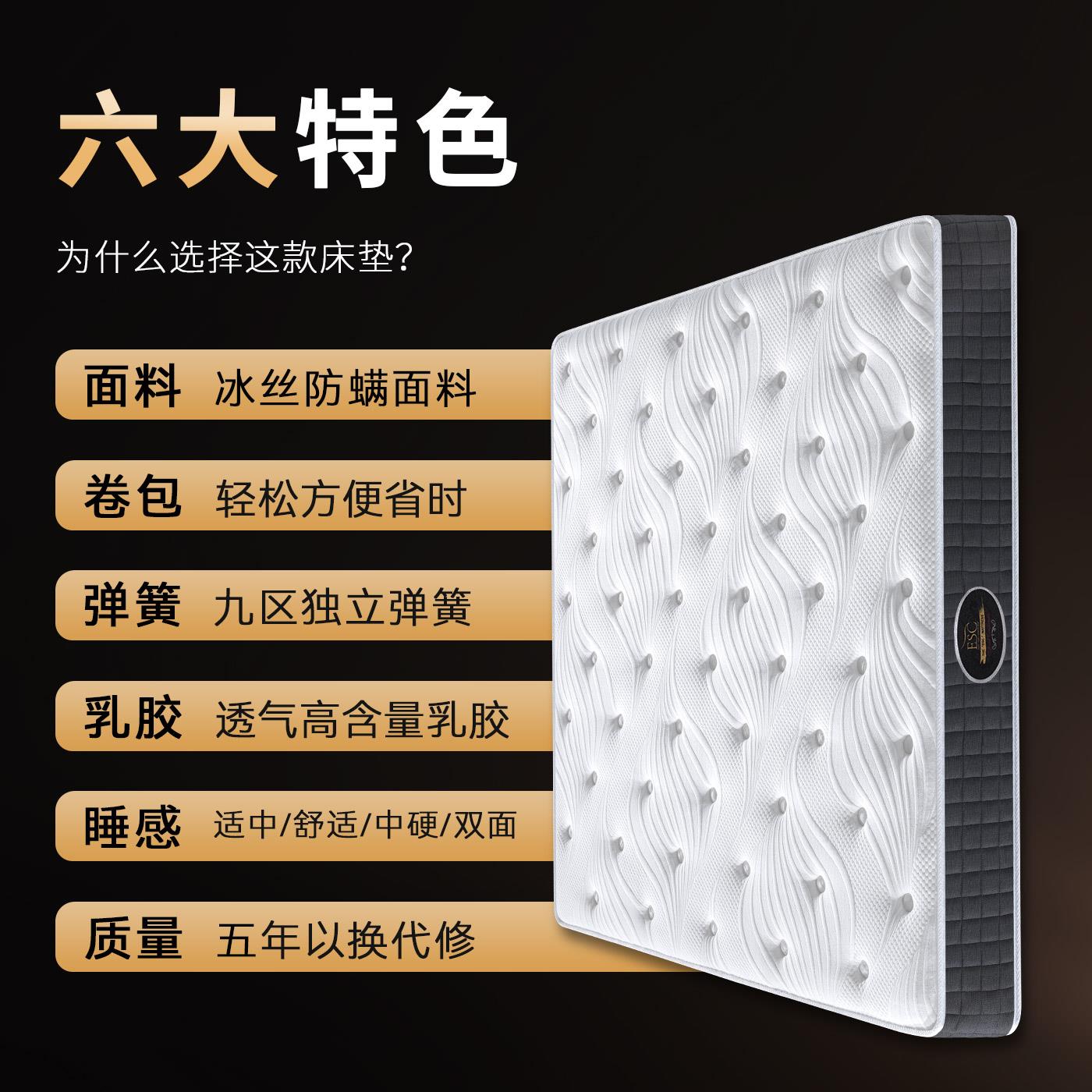 ESC压缩卷包盒子独立袋弹簧乳胶床垫20CM厚席梦思软硬家用卧室垫