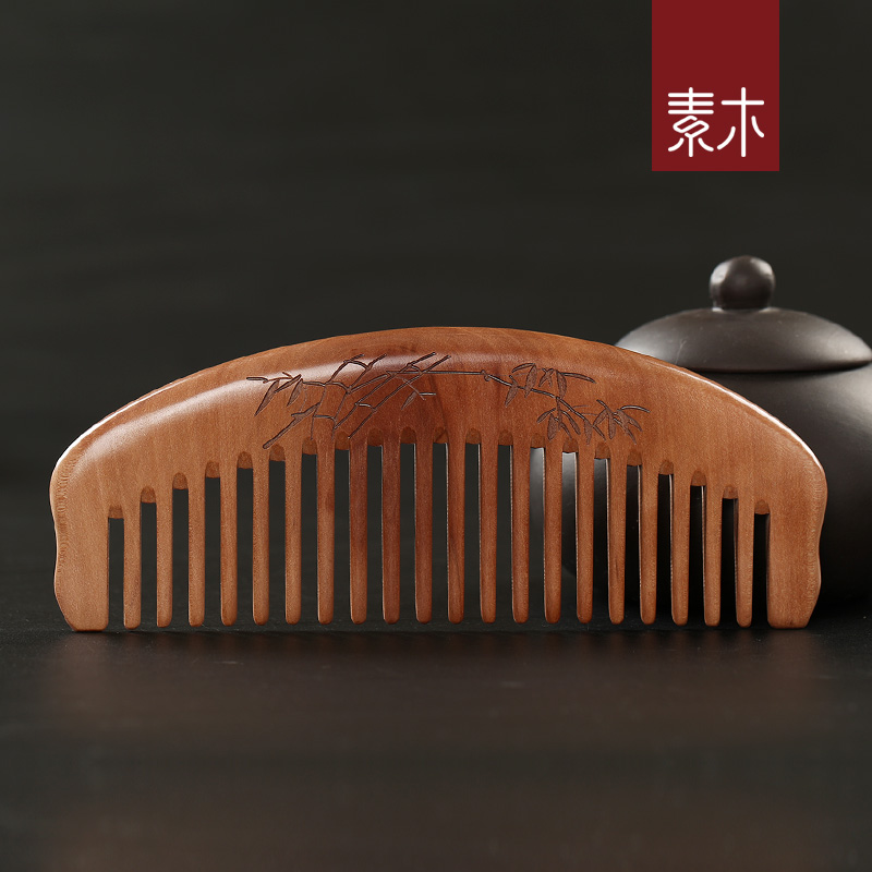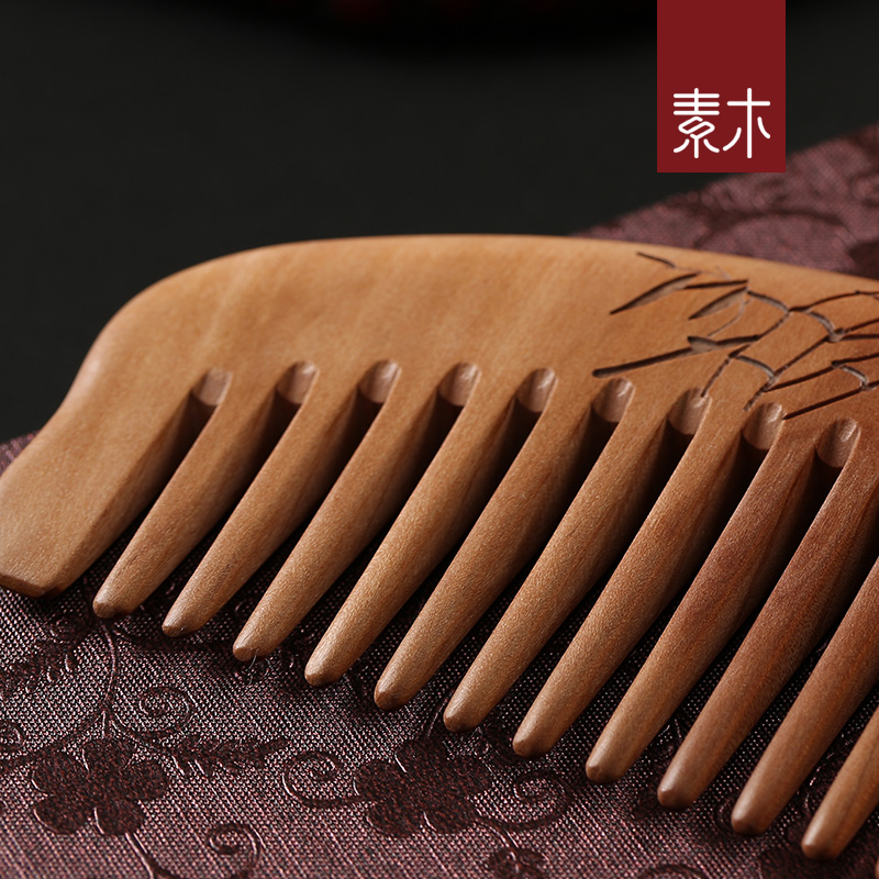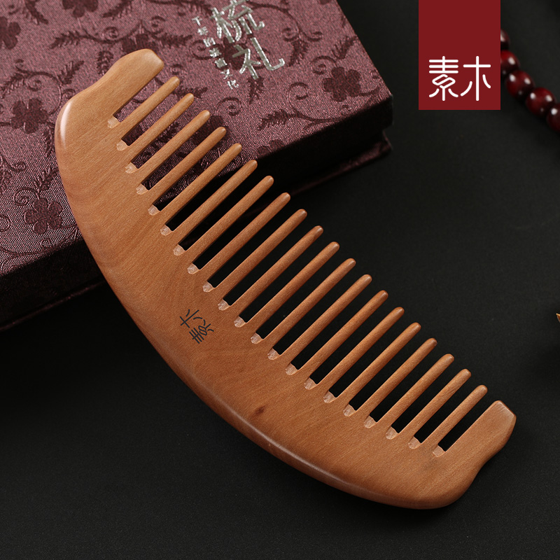 瑕品 天然老桃木梳子檀木牛角粗齿宽齿按摩梳女长发专用家用