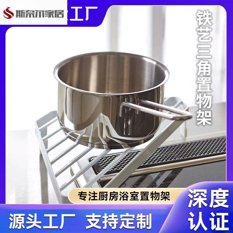 日式厨房锅架三角置物架金属D铁架防烫台面转角架家用
