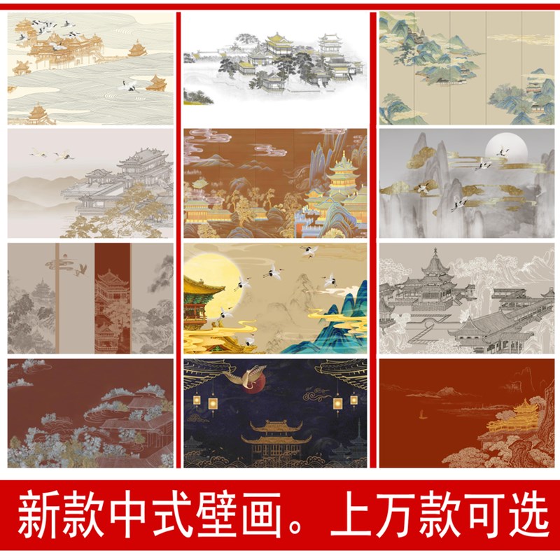 热销新中式复古凤凰电视背景墙壁纸客厅壁纸卧室墙壁布剧本杀定制