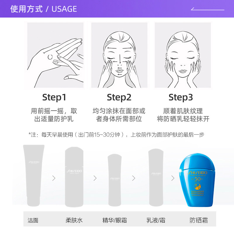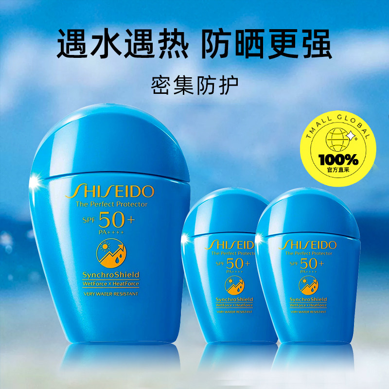 【自营】资生堂新艳阳夏臻效水动力防护乳 蓝胖子防晒50ml+15ml*2