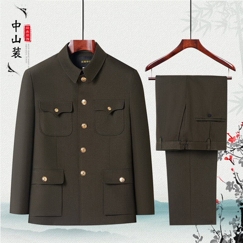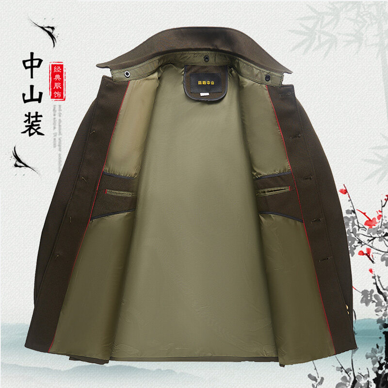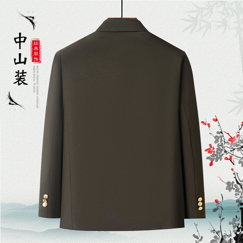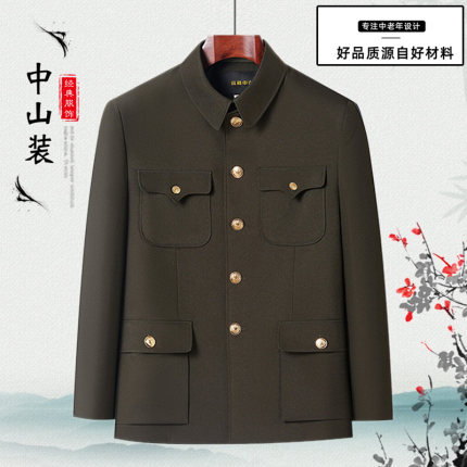 啄木鸟春秋中山装爸爸外套中老年男士爷爷60岁70老人外套民国服装