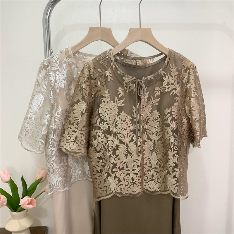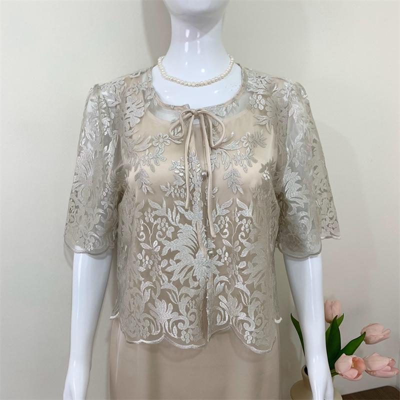 新中式女国风妈妈夏季新款连衣裙套装中老年贵夫人气质裙子两件套