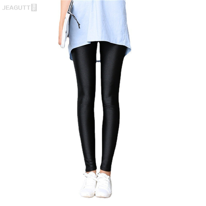 光泽打底裤女外穿春秋季薄款冬天健美踩脚弹力紧身大码修身九分裤