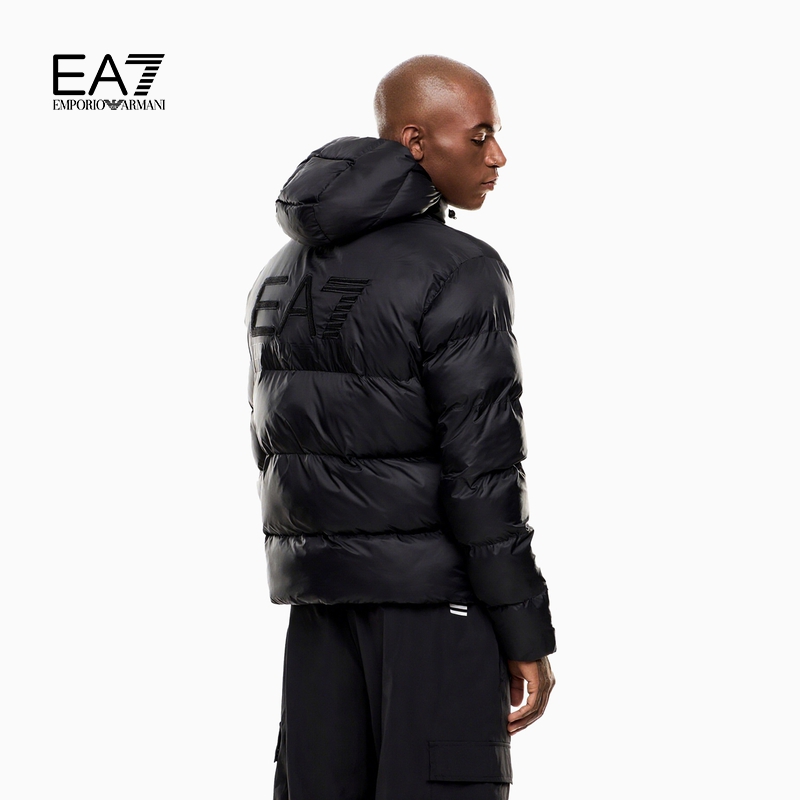 EA7/阿玛尼男士短款连帽刺绣棉服