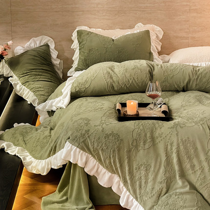 法式复古风牛奶绒四件套加厚保暖