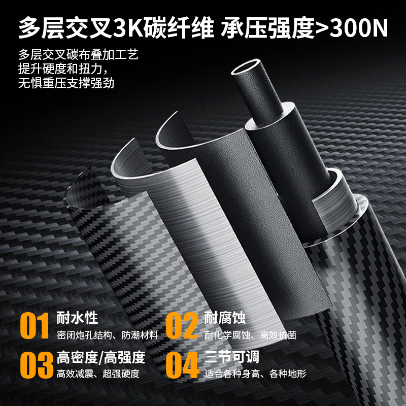 登山杖手杖碳素纤维伸缩专业户外男女儿童登爬山徒步轻便防滑三节