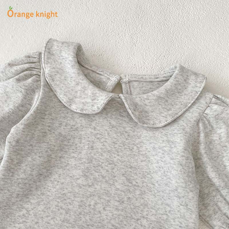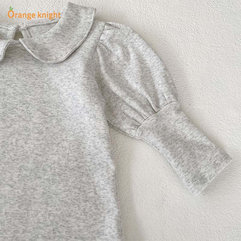 婴儿衣服秋装女宝宝娃娃领长袖连体哈衣泡泡袖三角包屁衣纯色爬服