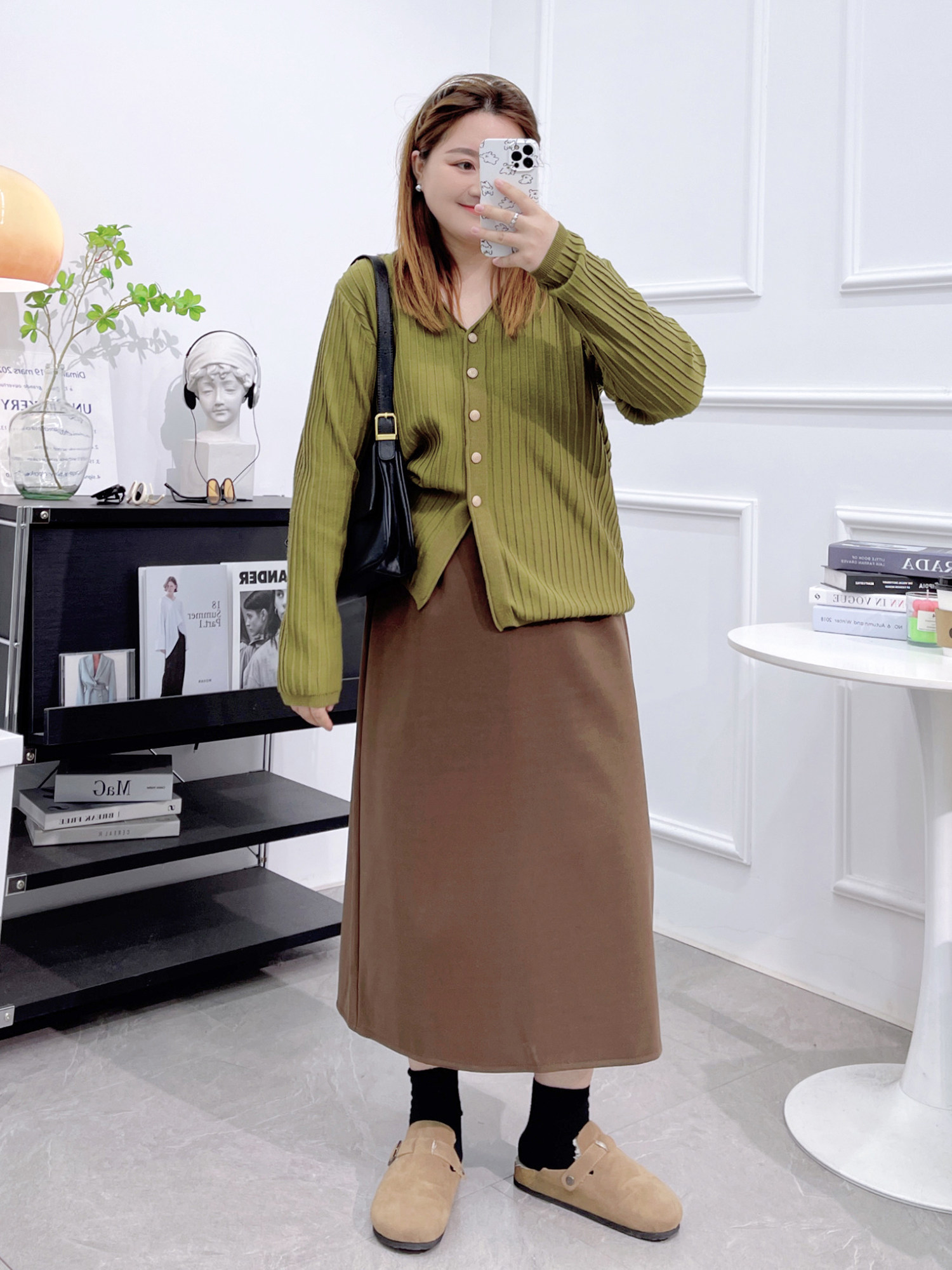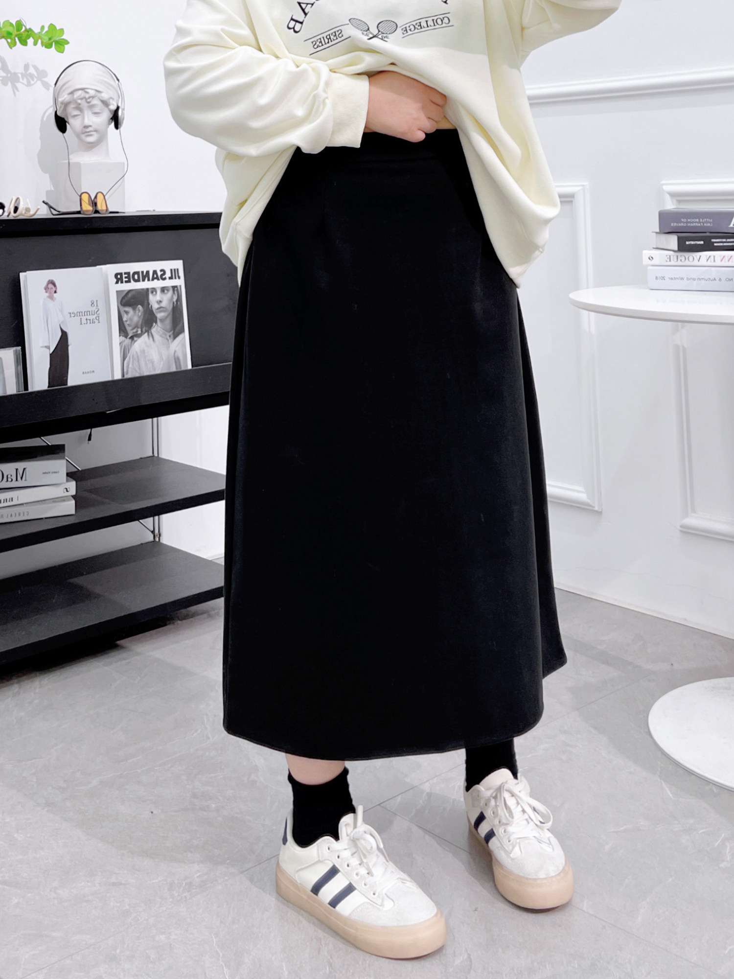 大码黑色半身裙秋冬高腰遮胯胖mm中长款宽松A字裙显瘦开叉一步裙