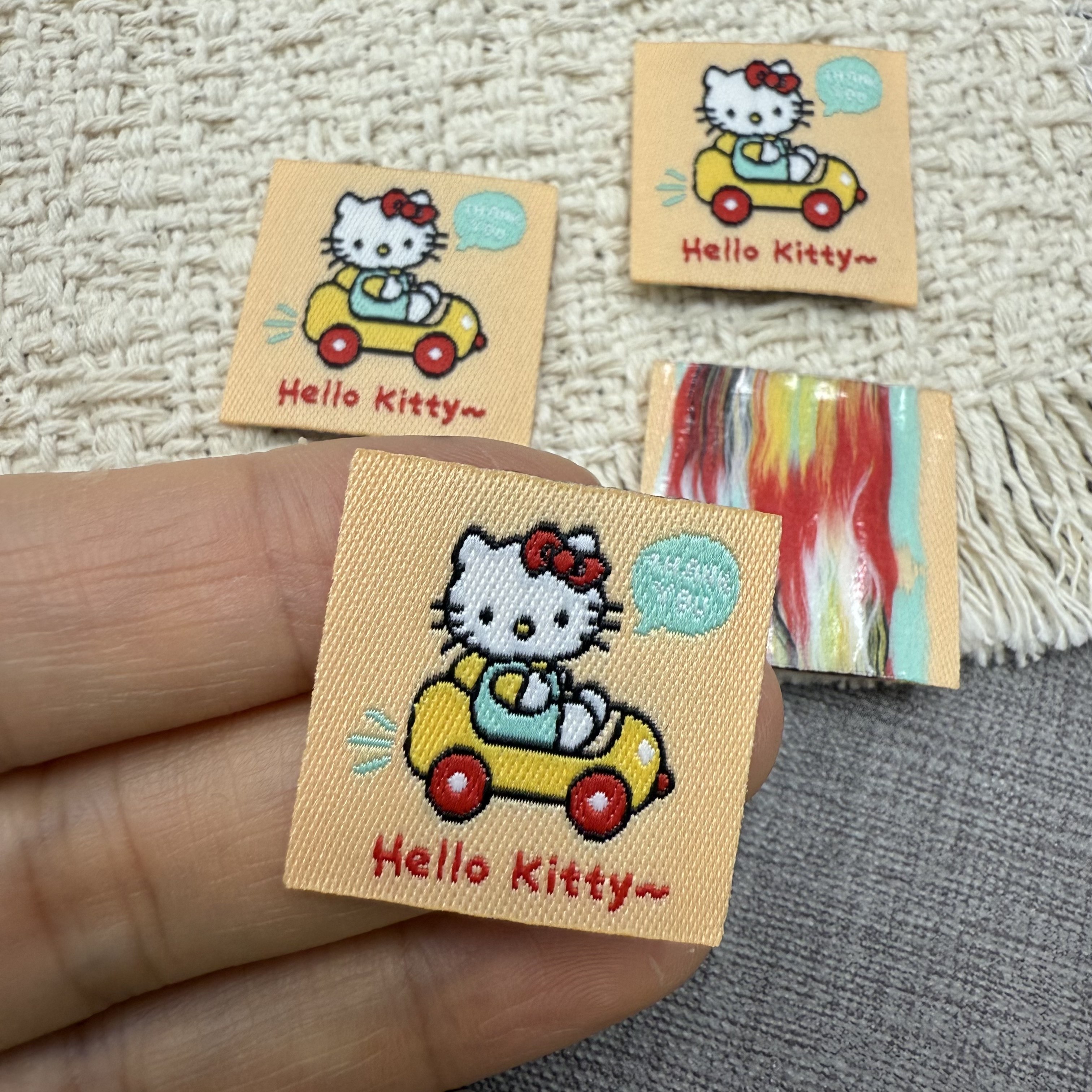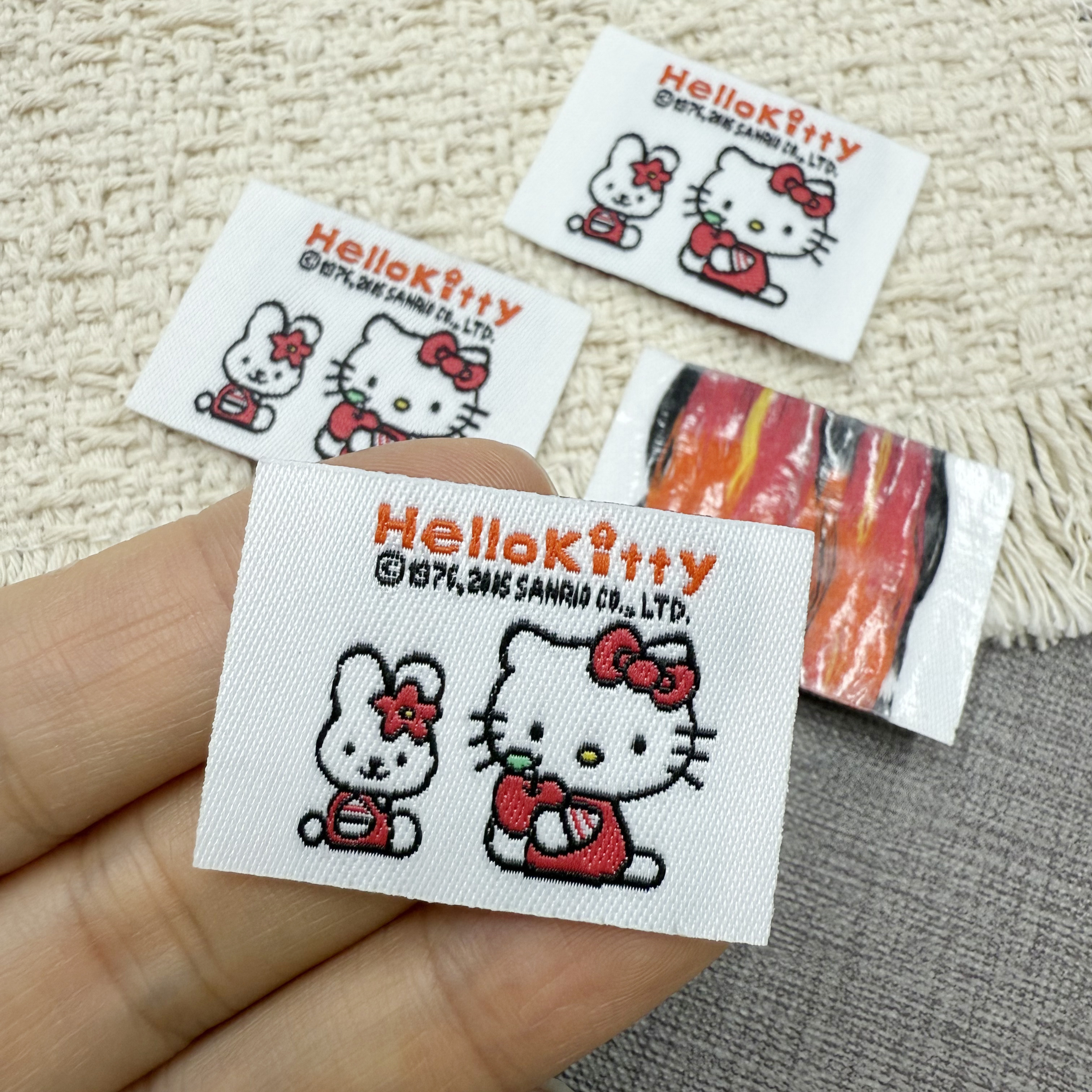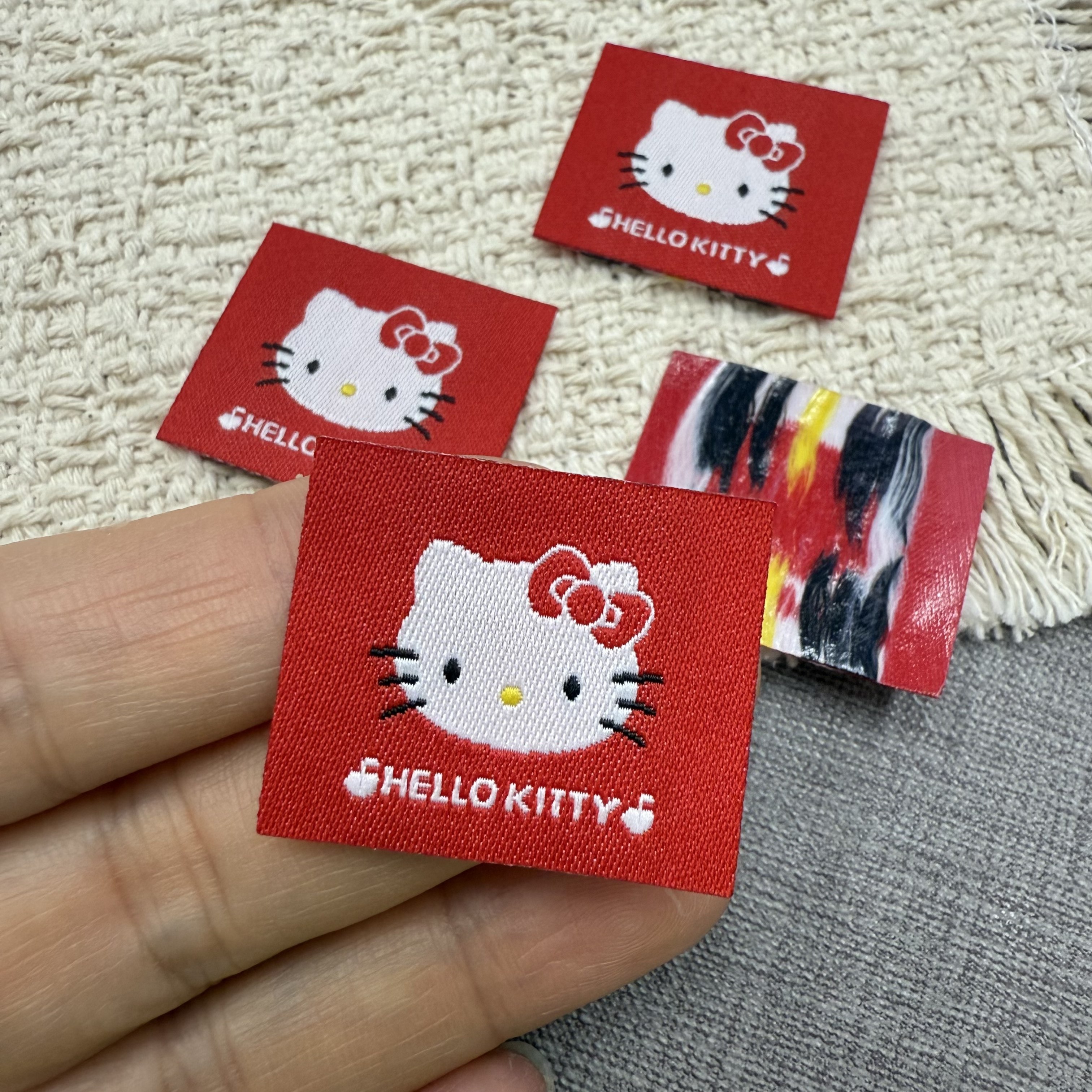新款热熔胶版kittly布标服装辅料标签商标领标袜口标卡通现货织标