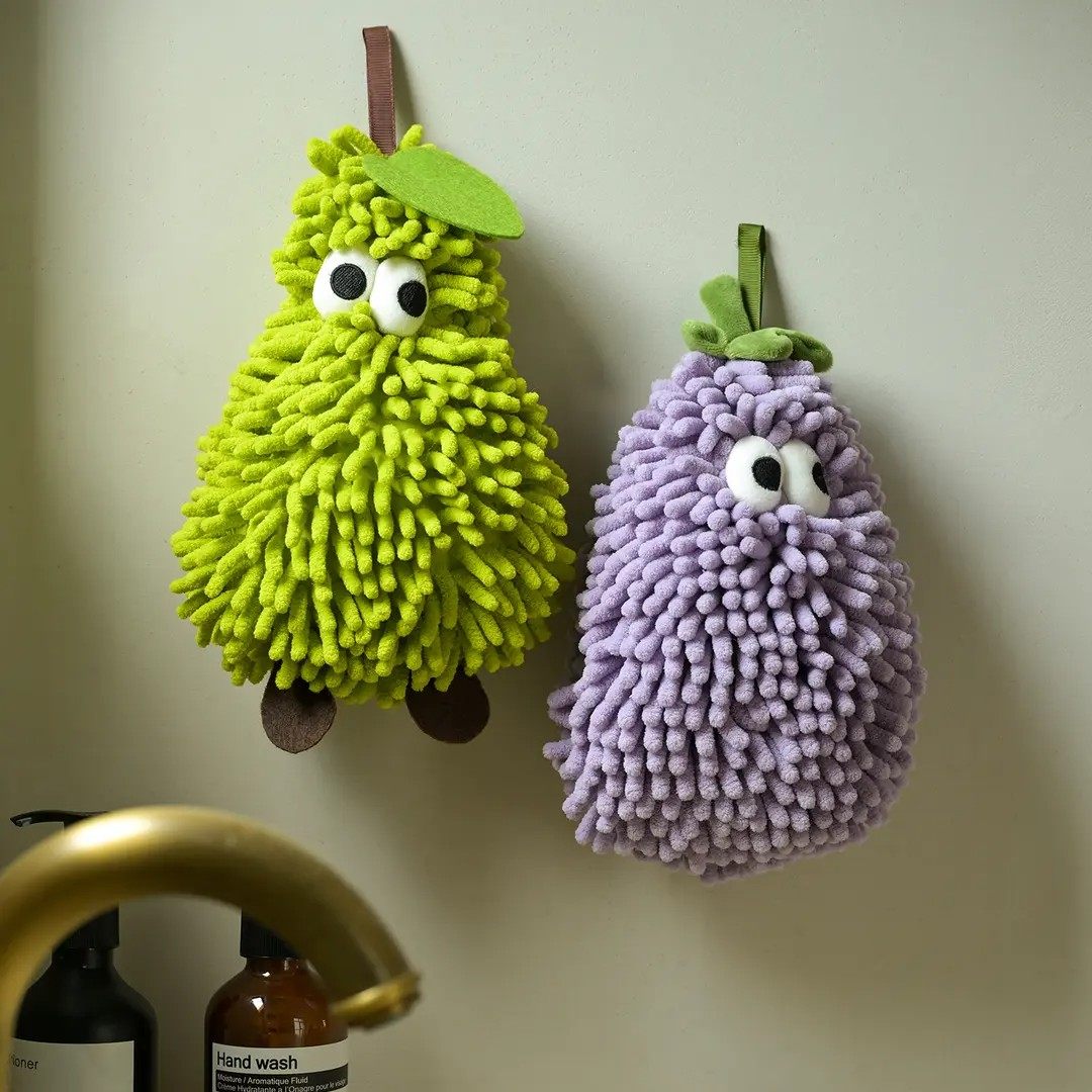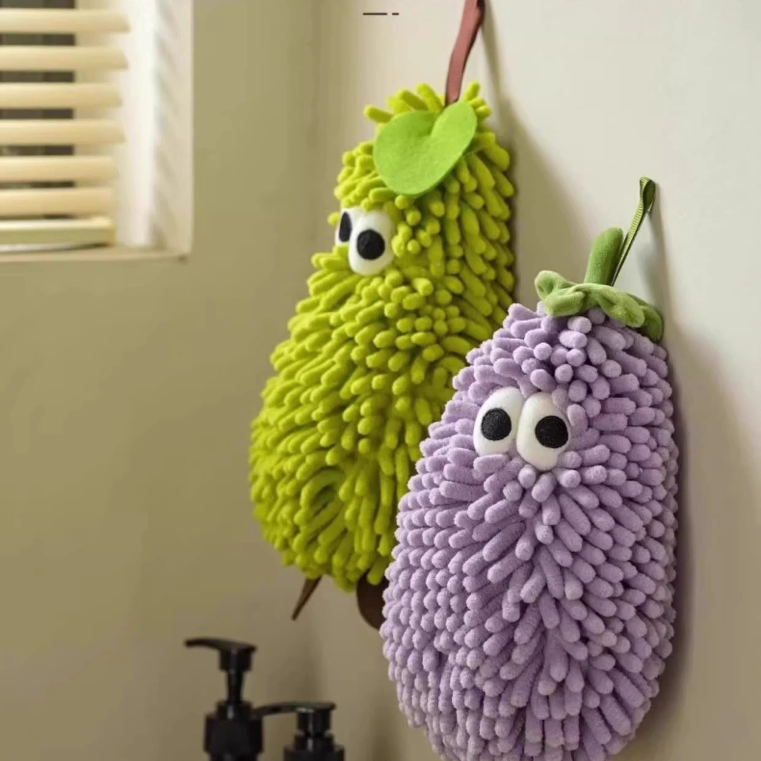 卡通雪尼尔擦手巾挂式可爱小茄紫梨子加厚速干厨房卫生间儿童毛巾