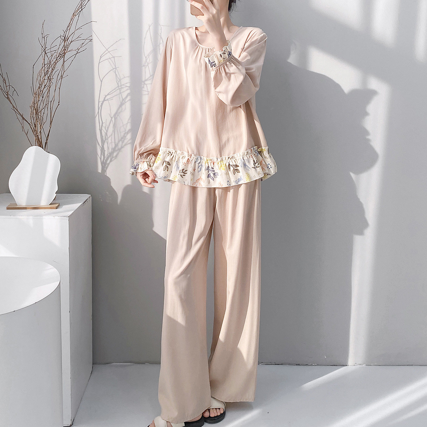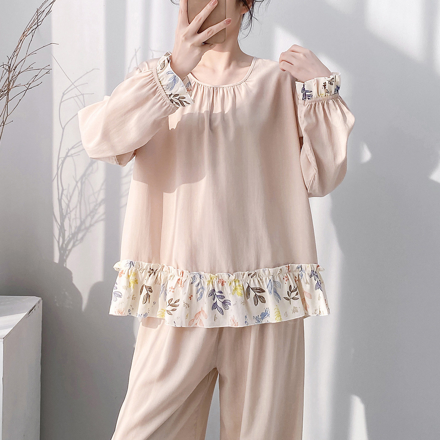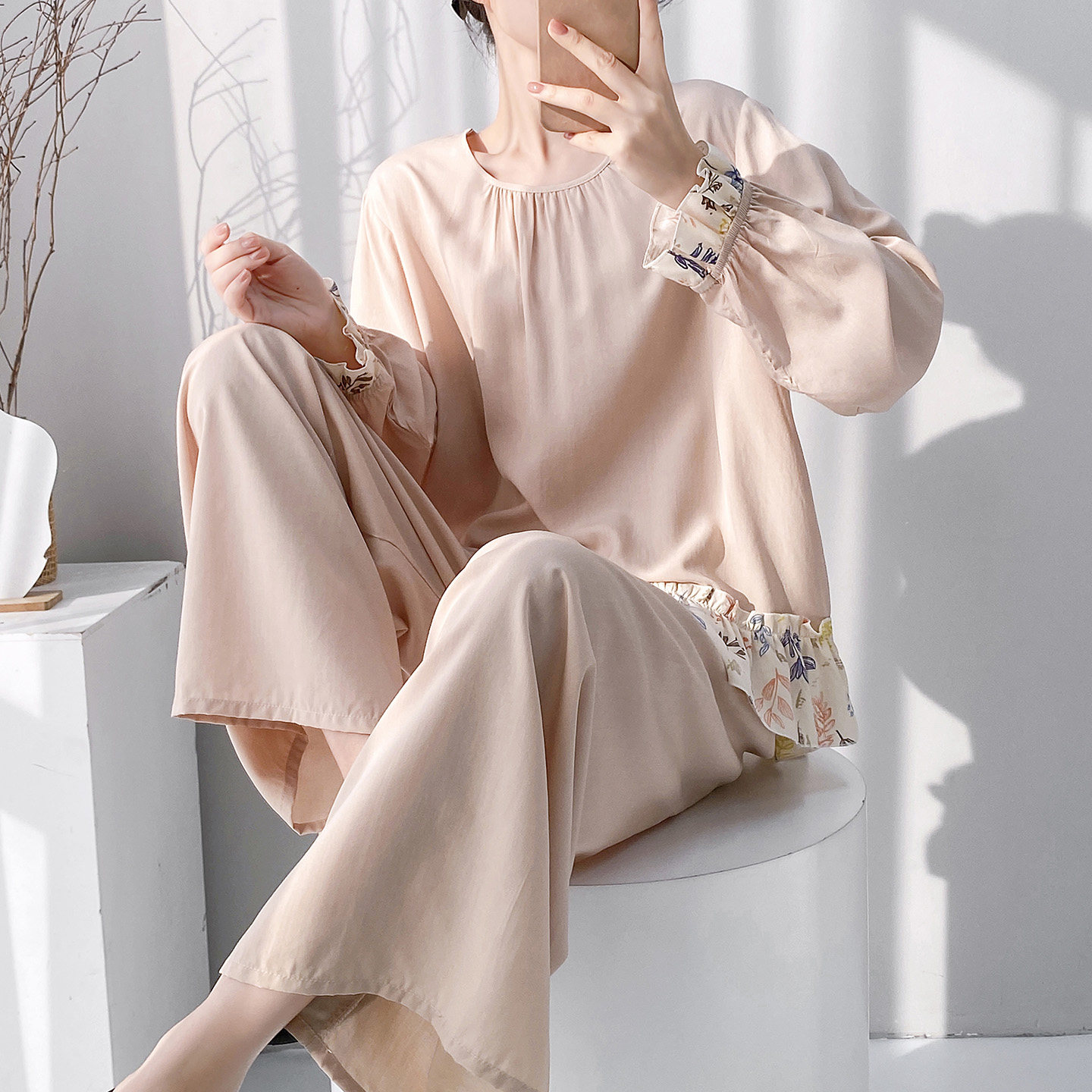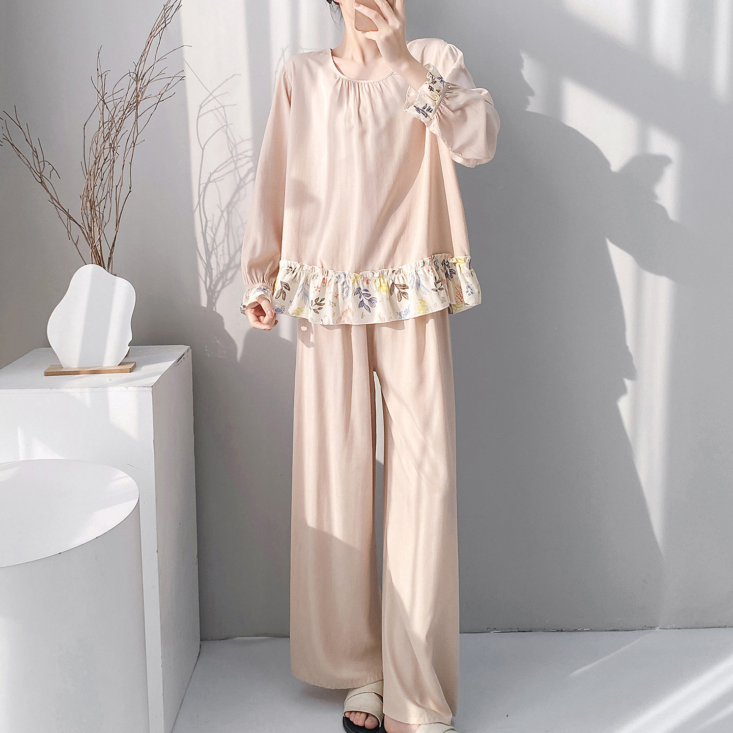 棉绸睡衣女春夏季宽松印花绵绸可外穿家居服凉感透气阔腿裤套装薄