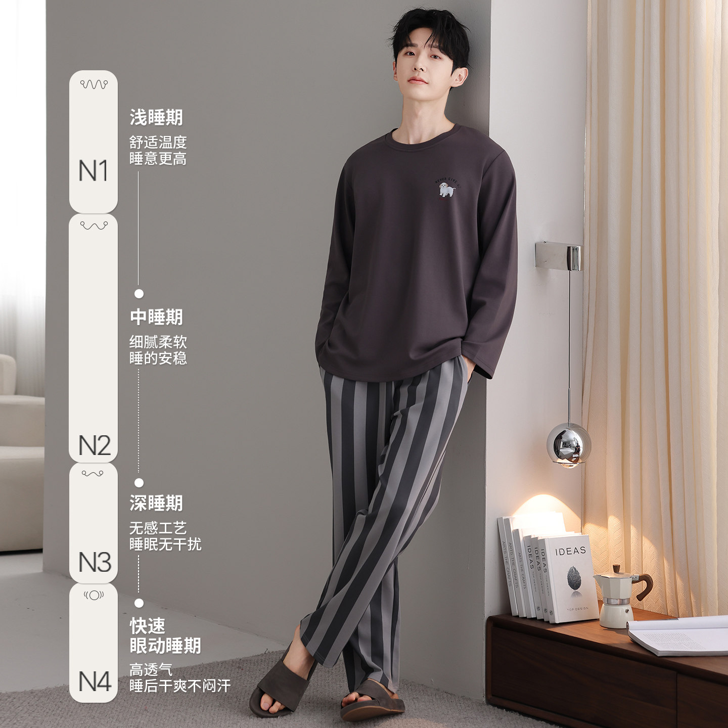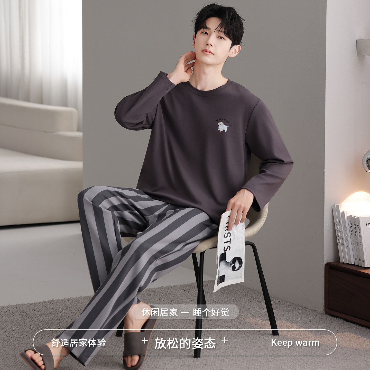 芬腾可安男士睡衣男款冬季纯棉长袖男生2026新款深灰家居服春秋季