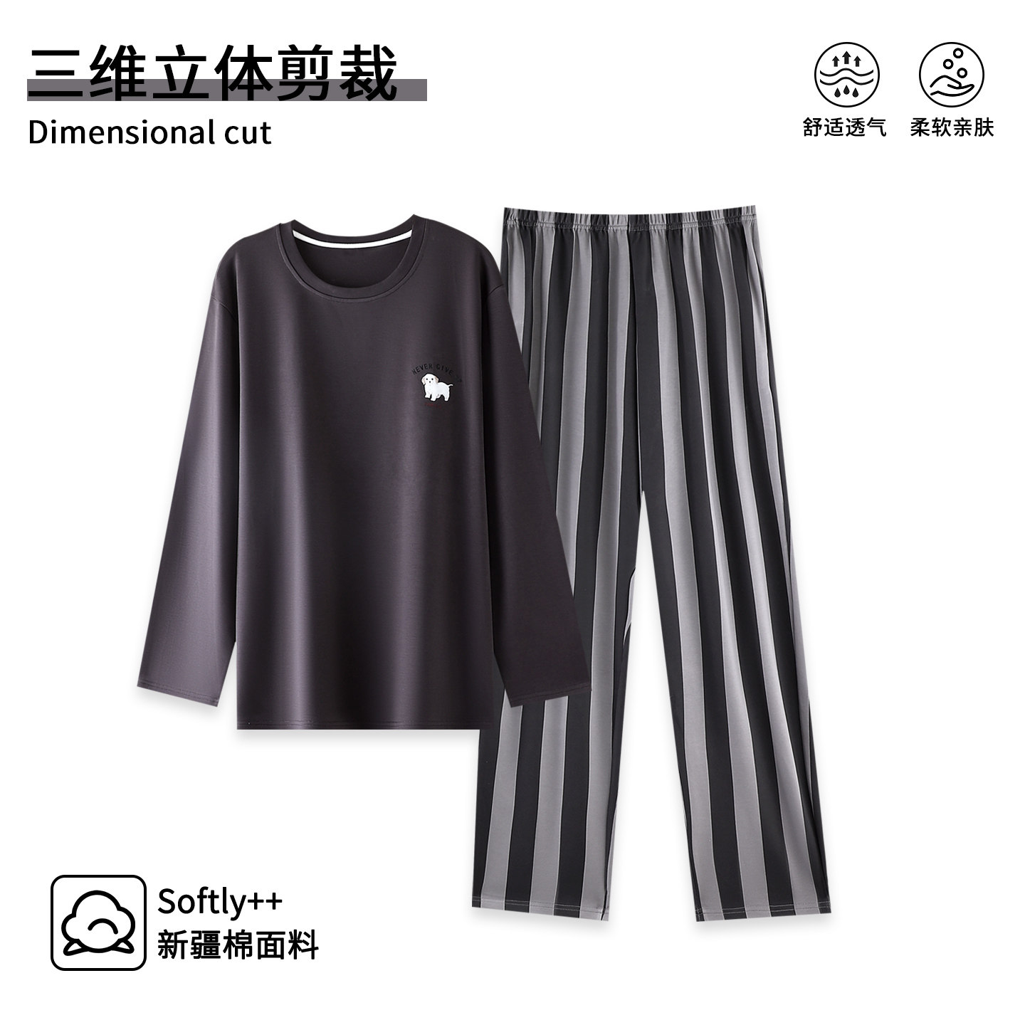 【芬腾】100%棉睡衣男春柔软亲肤