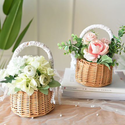 花篮花童藤编编织手提拍摄道具野餐小花篮子插花摆件提篮鸡蛋送礼
