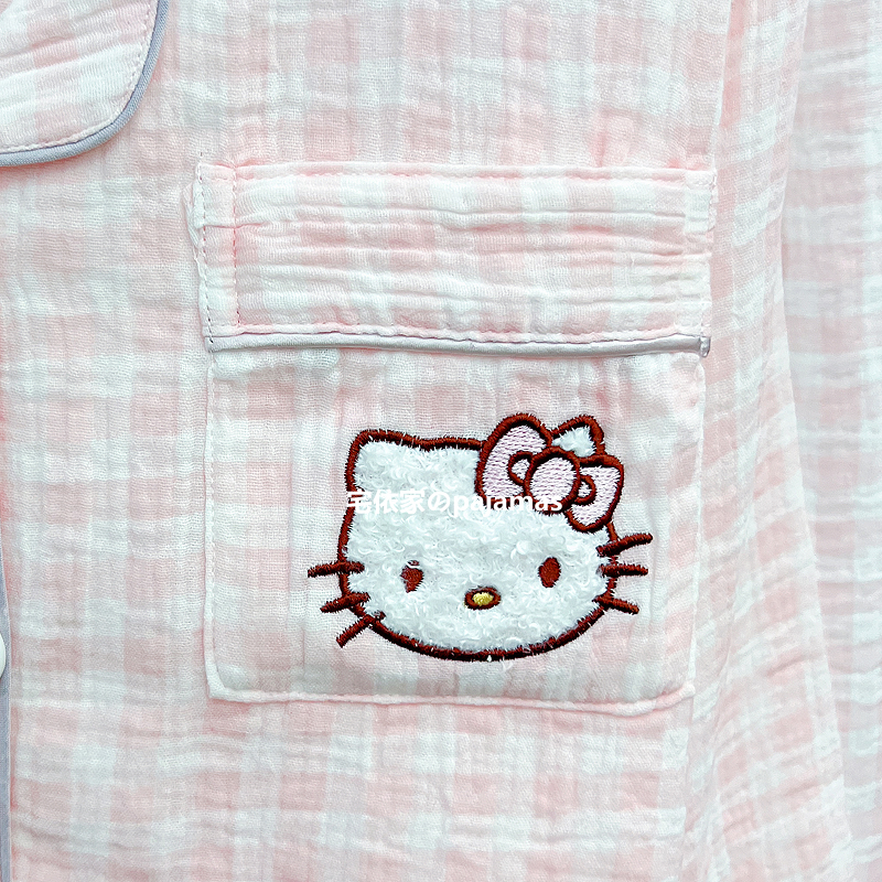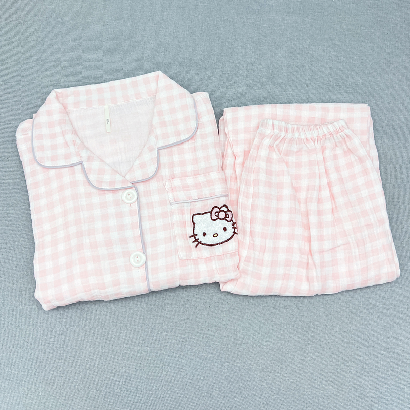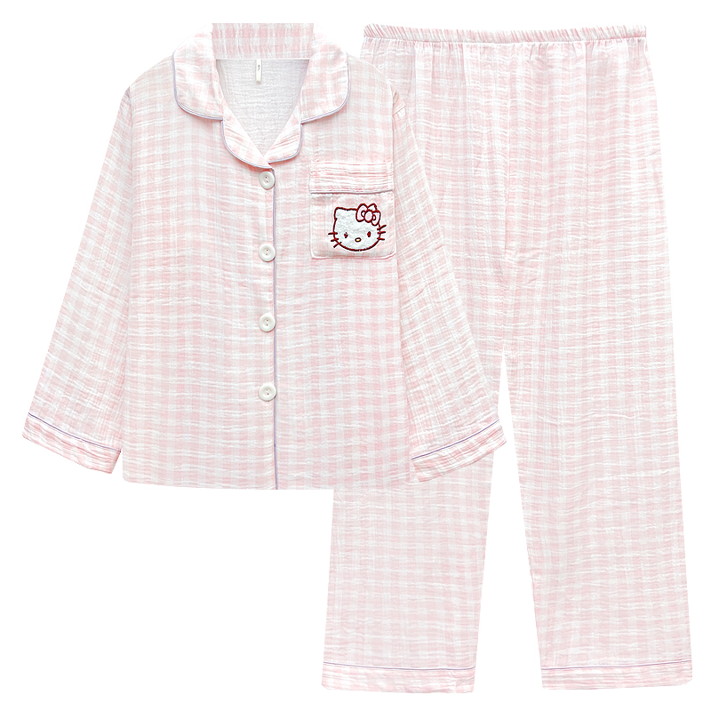 纯棉睡衣女春夏季长袖双层泡泡纱布可爱HelloKitty家居服套装秋冬
