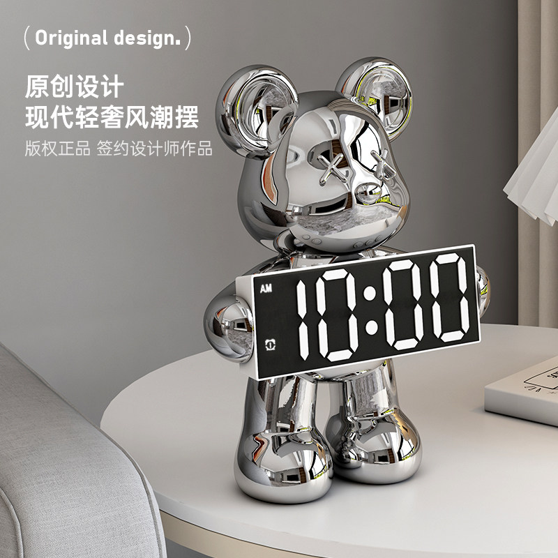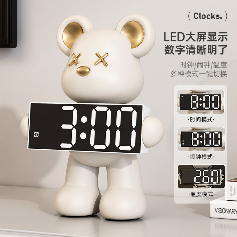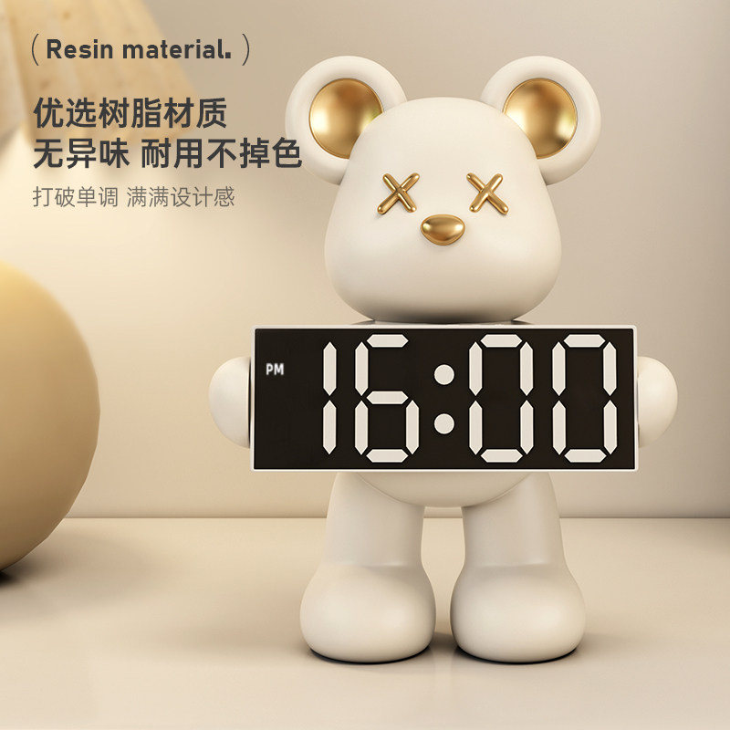 暴力熊电子时钟桌面客厅创意摆件卧室床头柜夜光台式数字显示闹钟