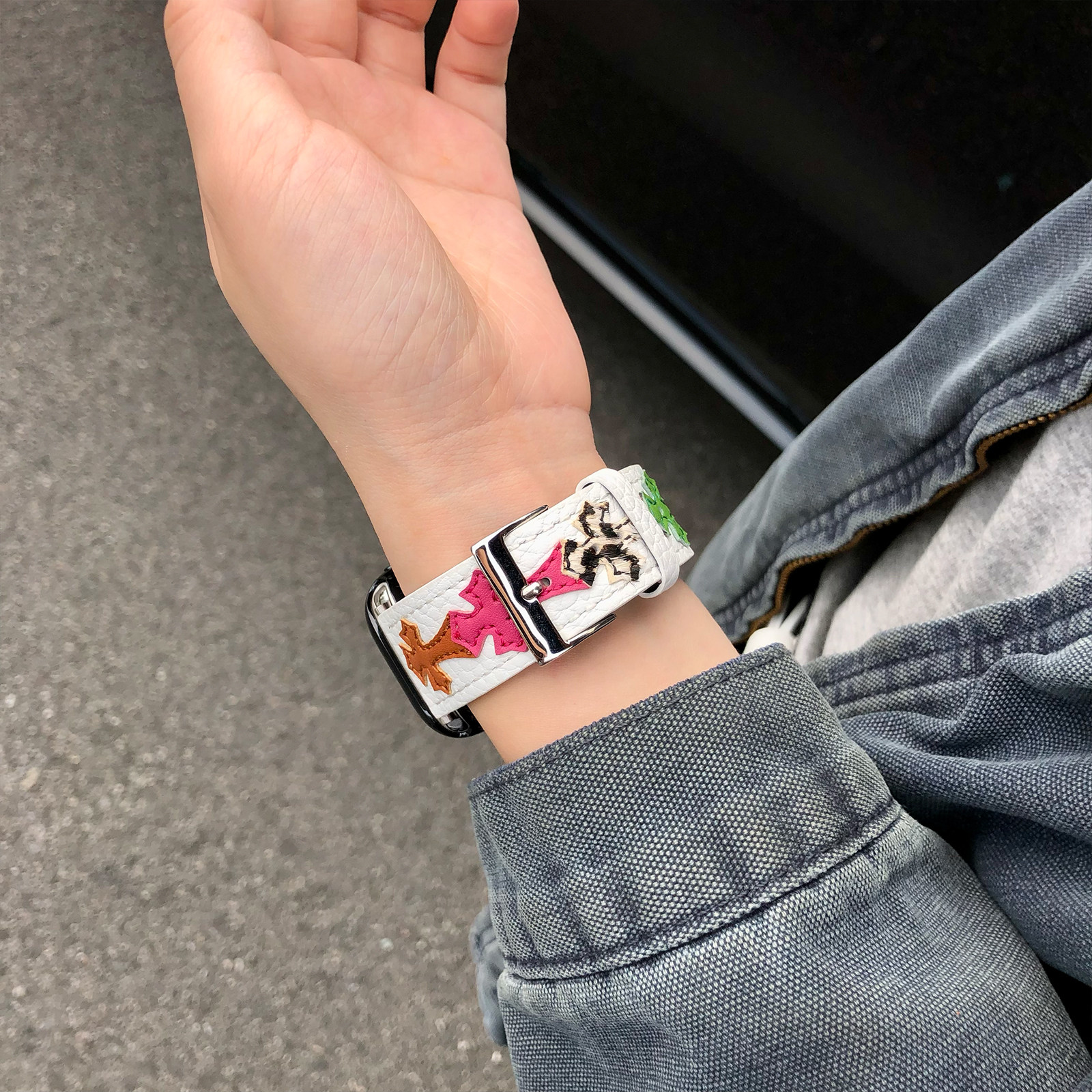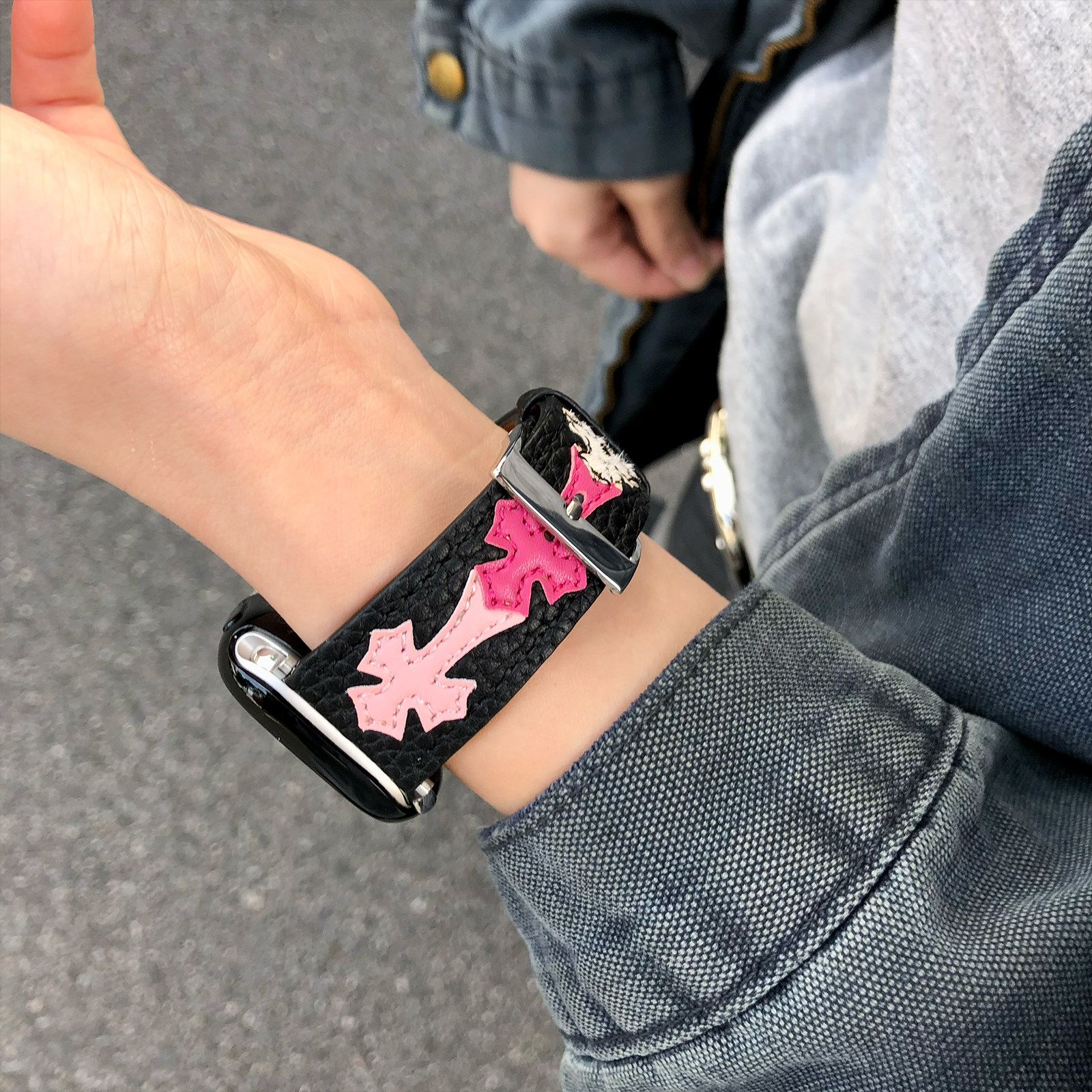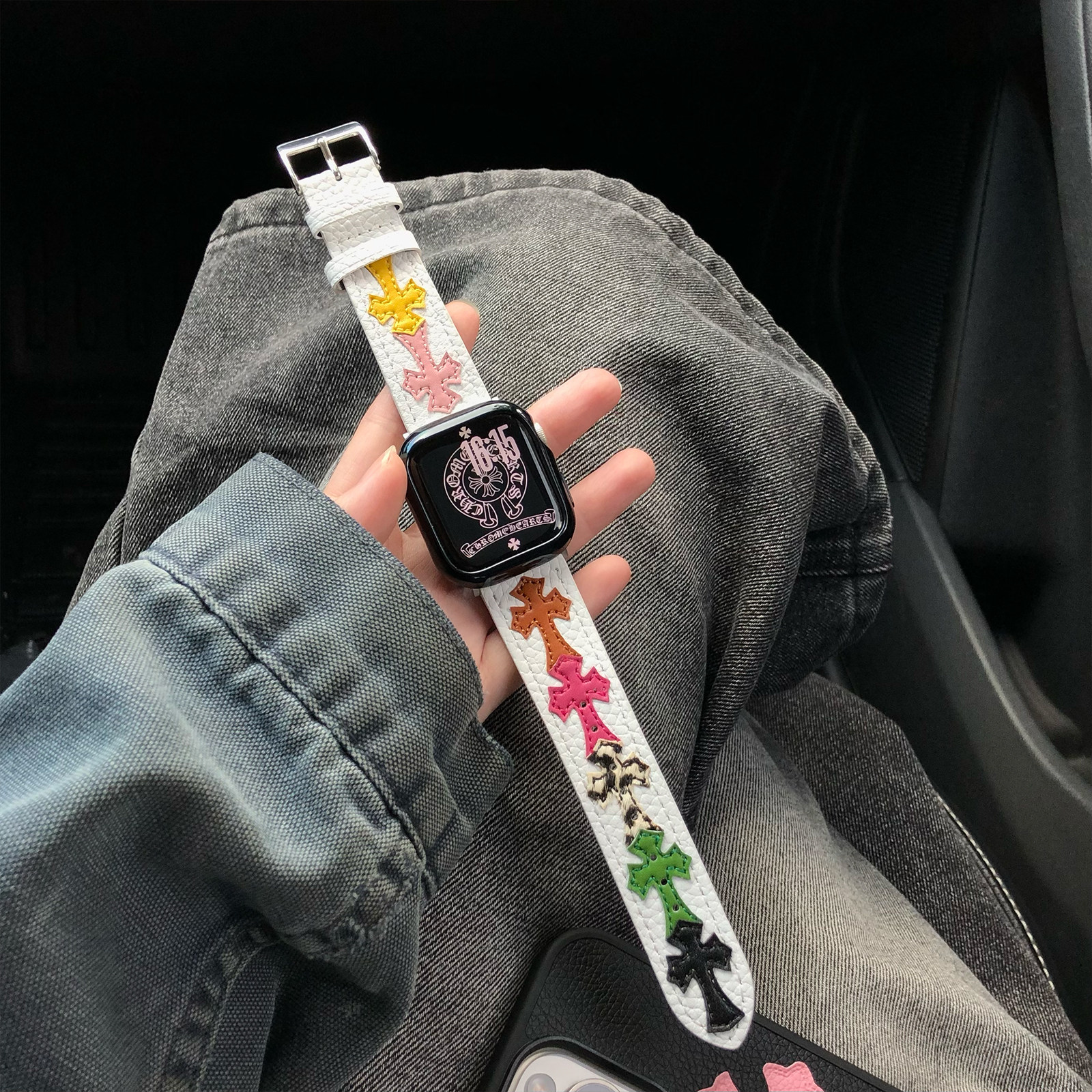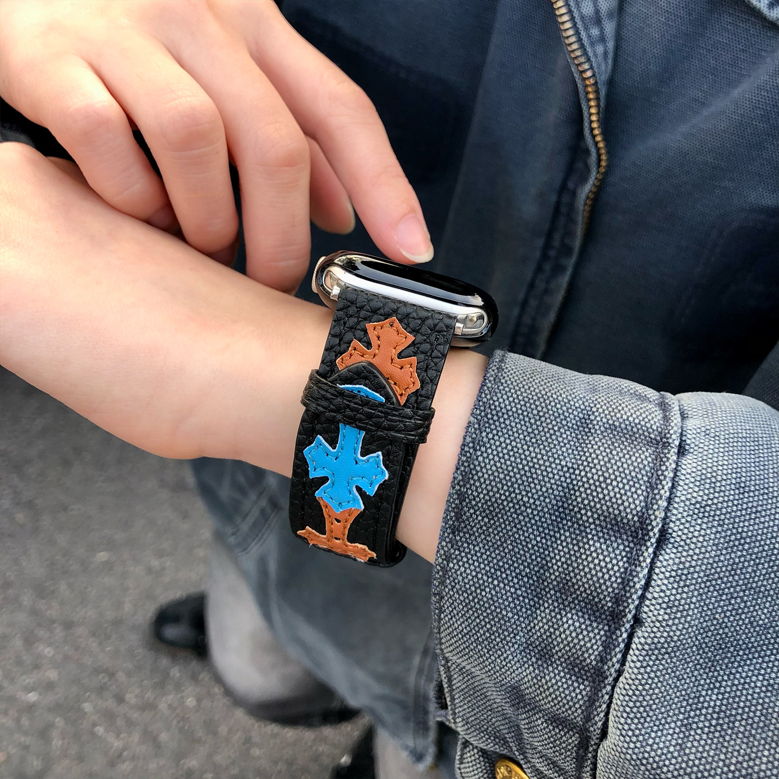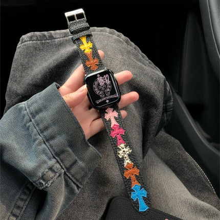 康康的原创荔枝纹克罗辛皮质CH十字架适用11iwatch10苹果手表表带