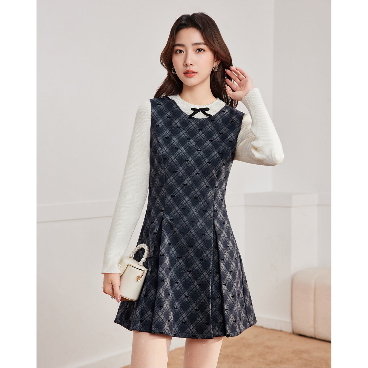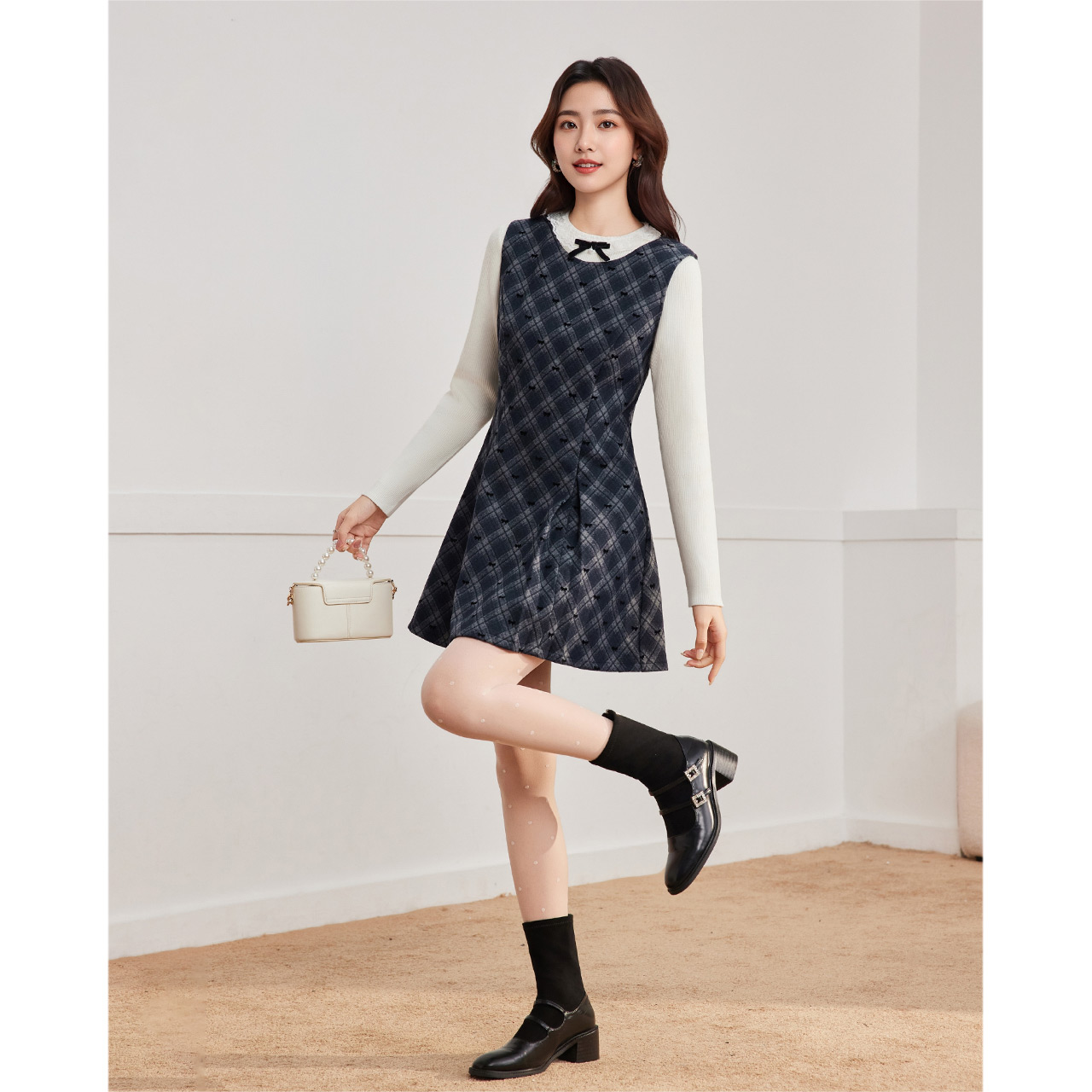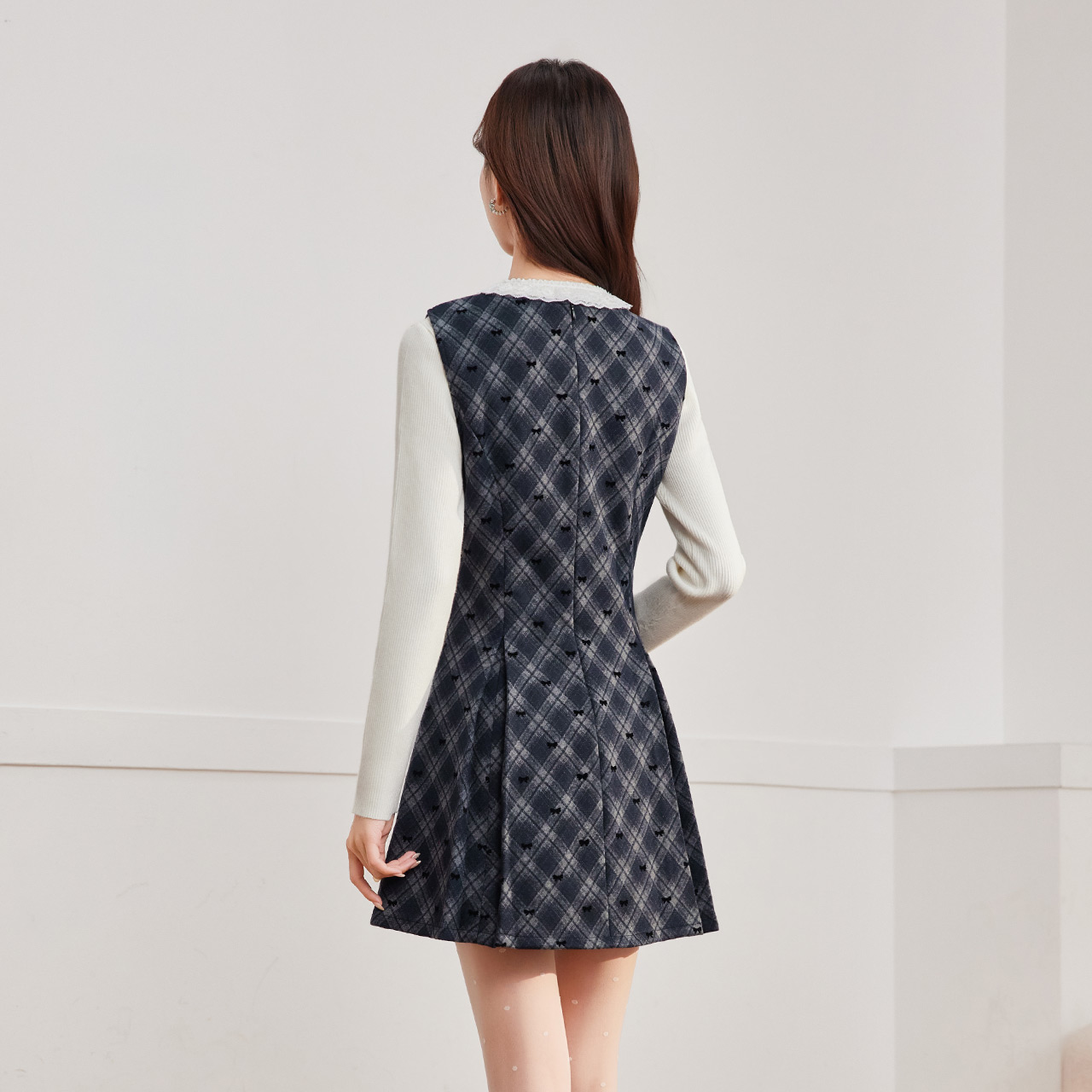IEF/爱依服连衣裙2025秋冬新款新富江学院风毛织上衣格子背心套裙