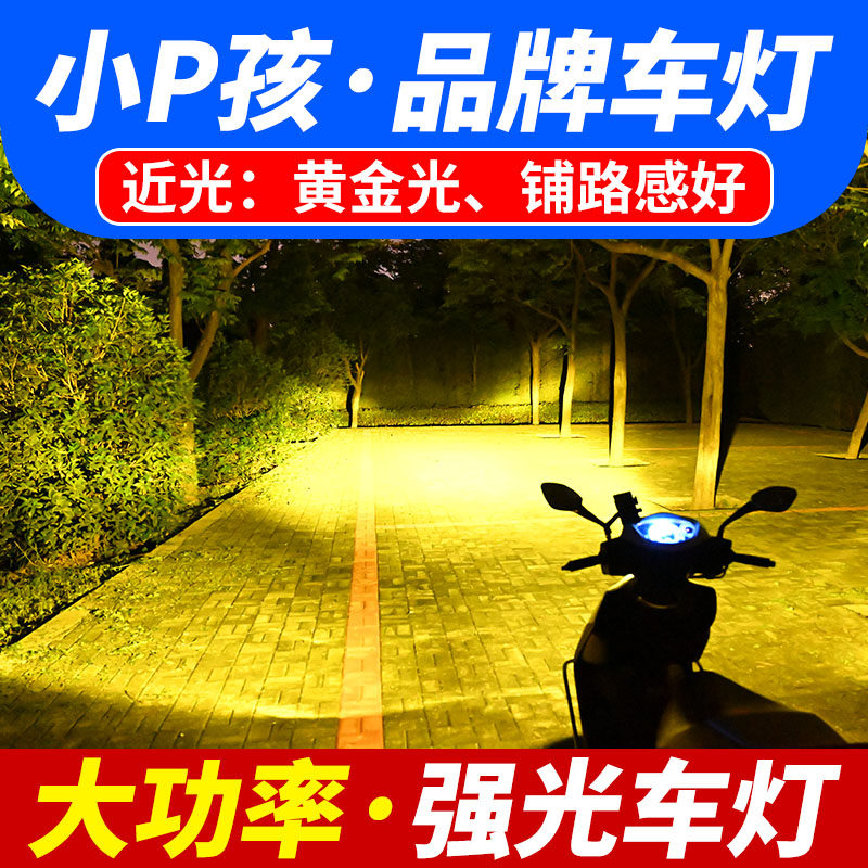 踏板摩托车LED大灯超亮强光三轮车改装内置超白光黄光12V前大灯泡