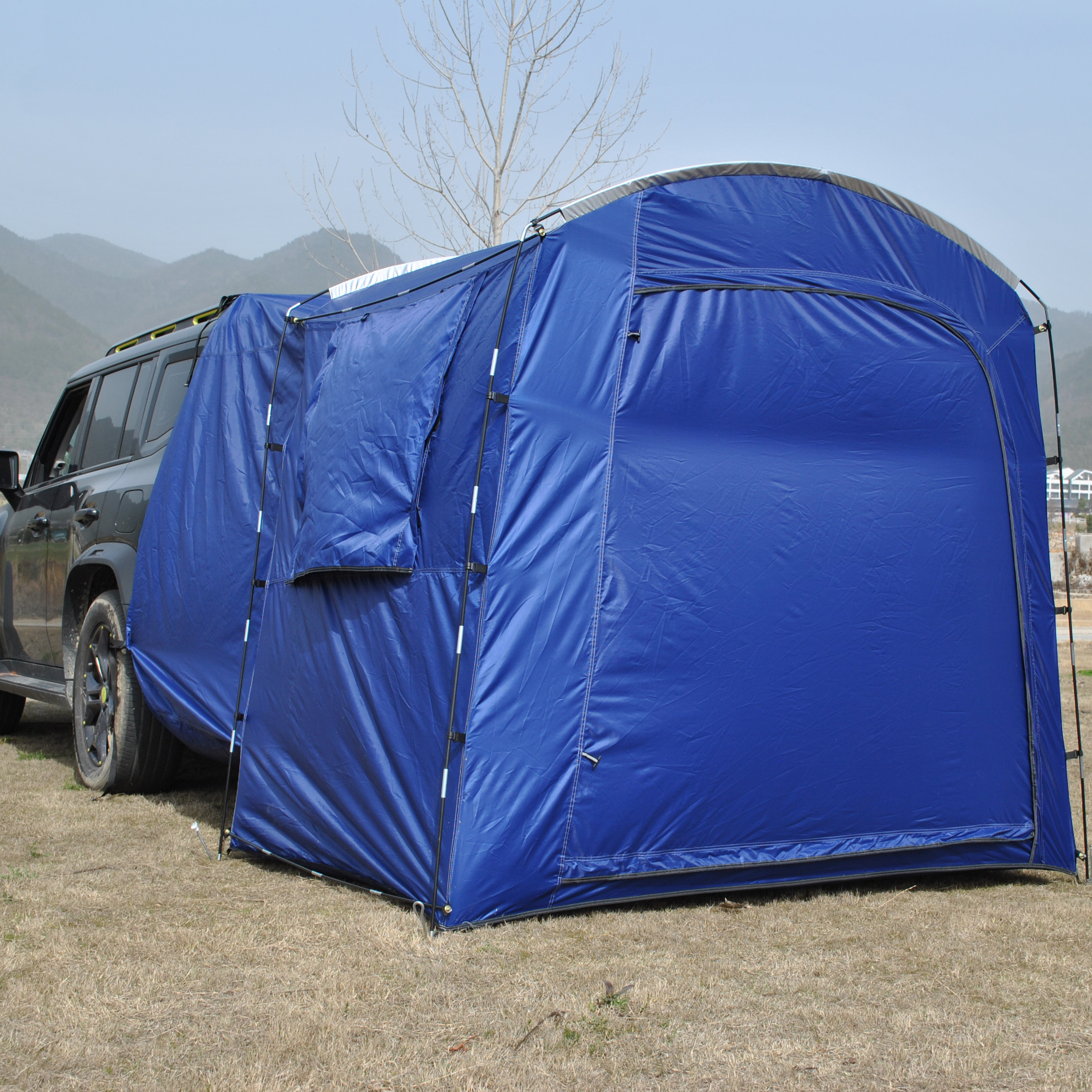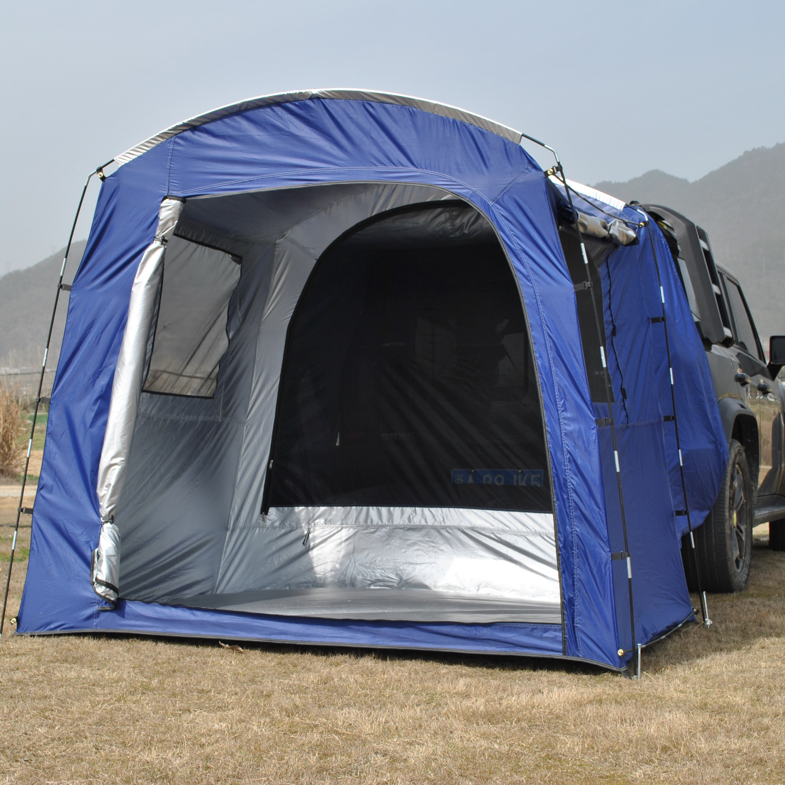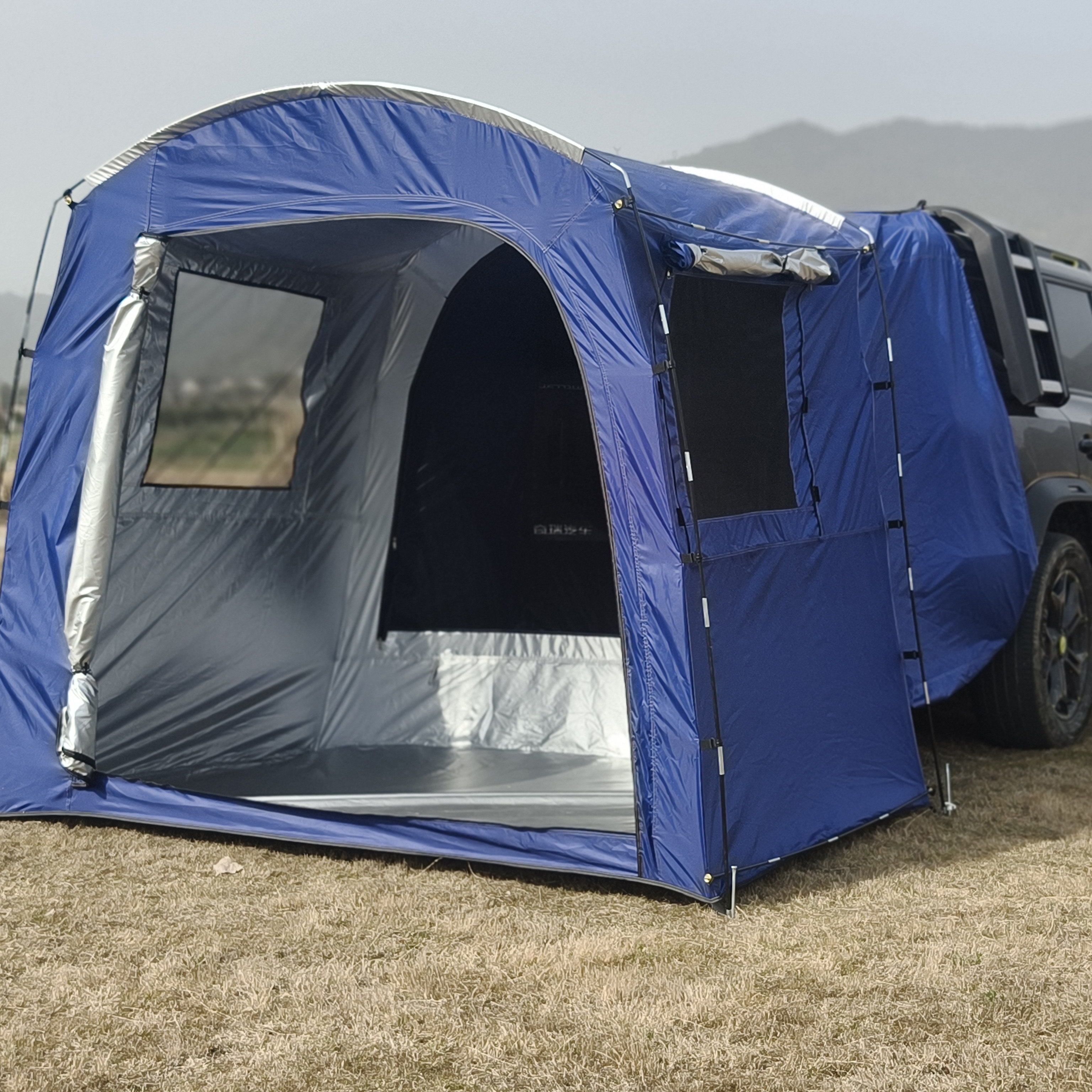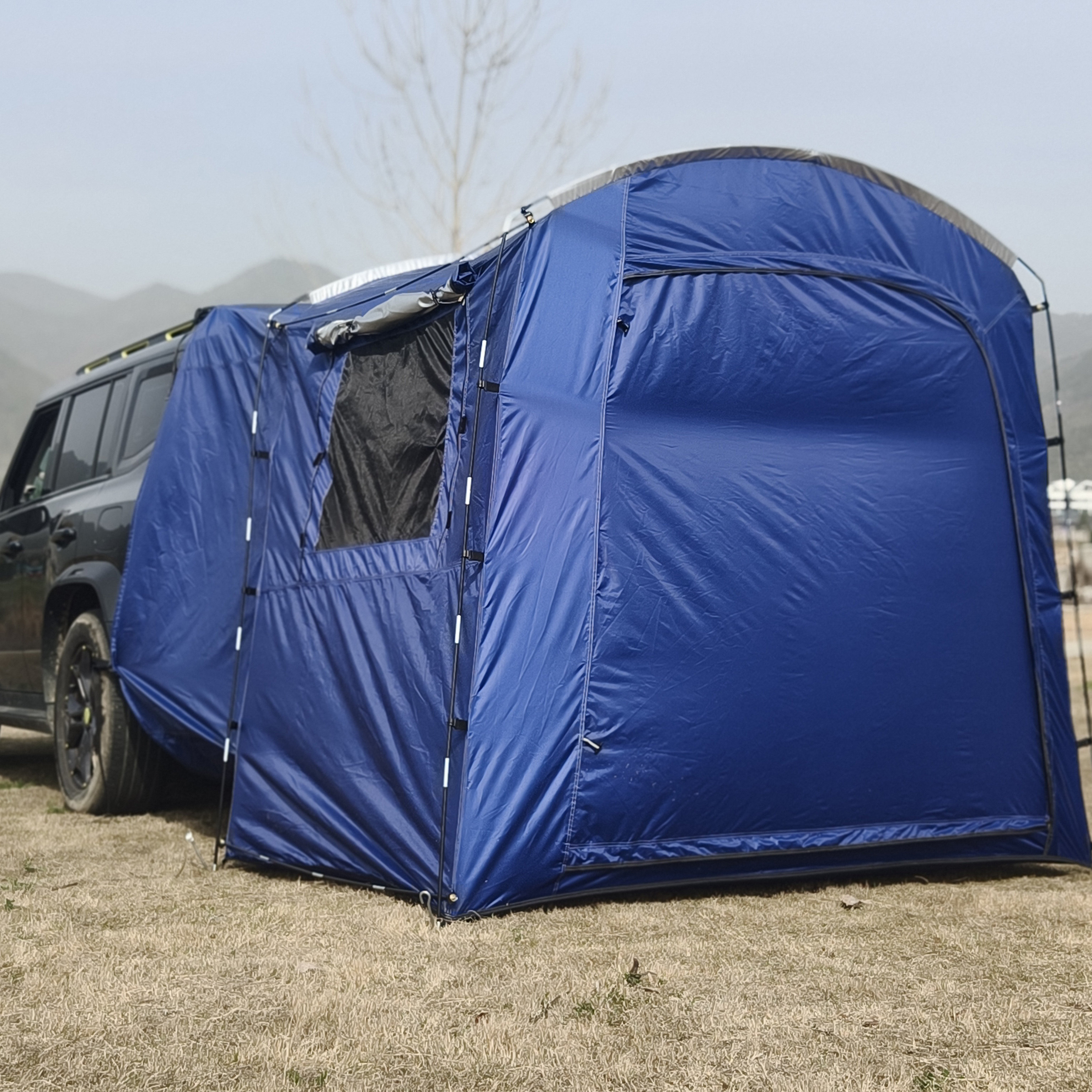 自驾游车尾帐篷,停车场可搭建轿车帐篷,带隔间带网纱车尾空调帐篷