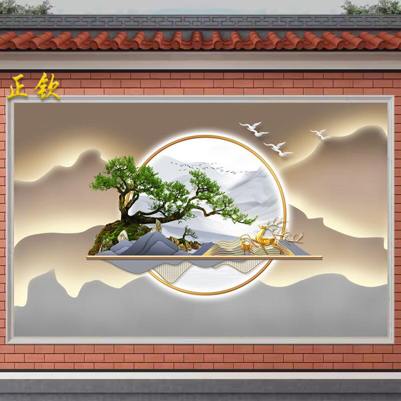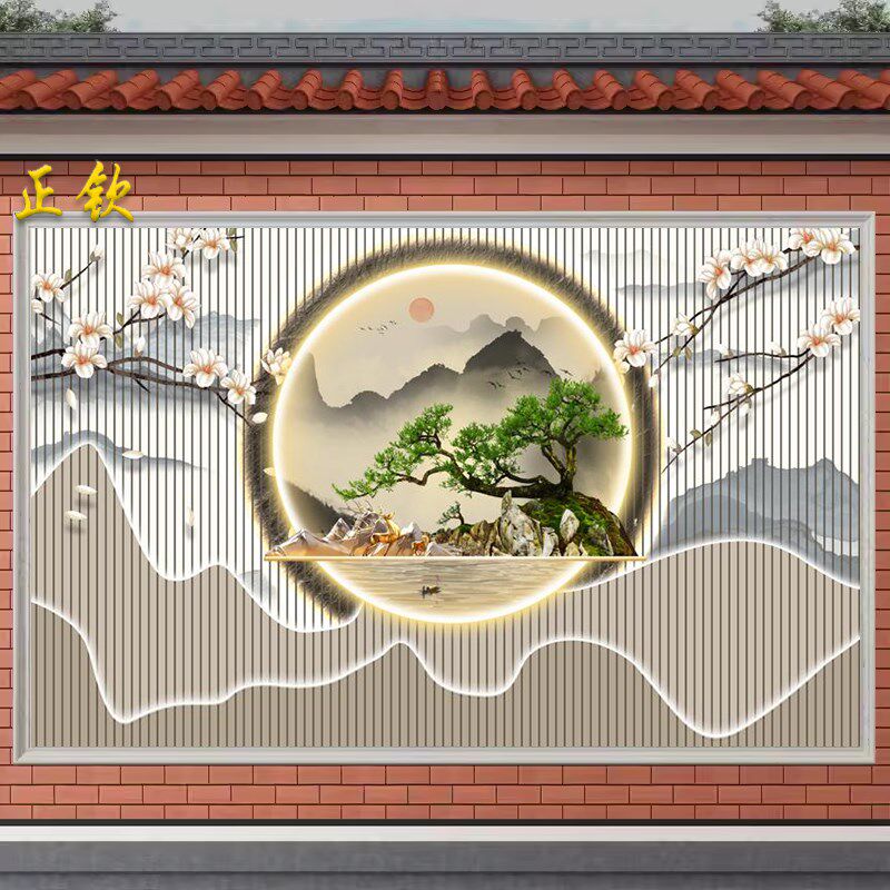 3d现代简约别墅迎门墙壁画户外瓷砖背景墙新中式庭院照壁墙装饰画