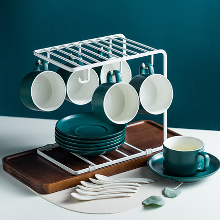 北欧风格咖啡杯碟套装家用陶瓷咖啡杯下午茶杯碟碟勺创意茶具套装