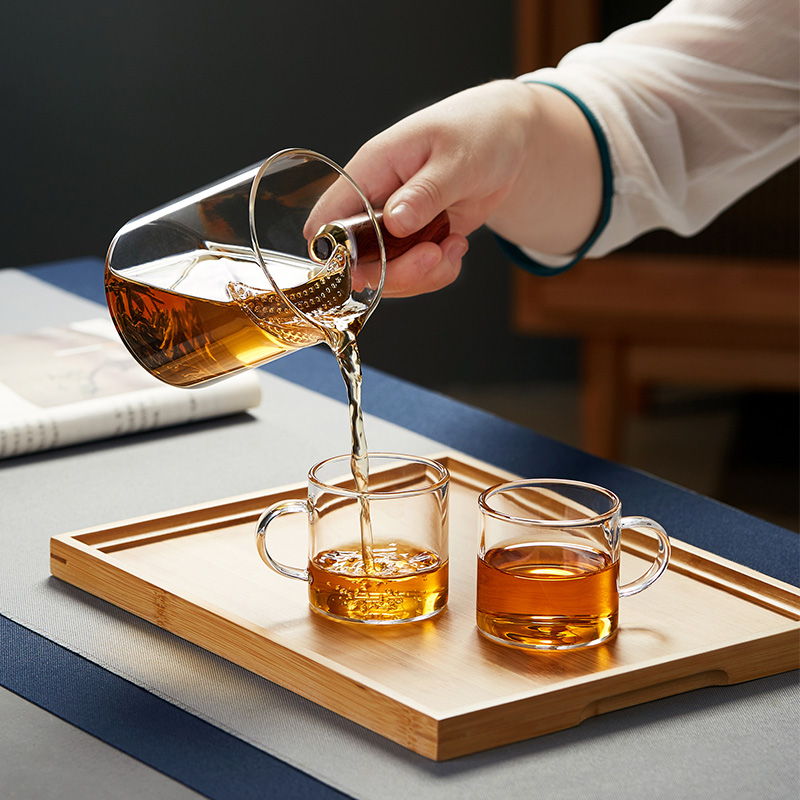 侧把玻璃公道杯加厚耐热茶漏一体分茶器月牙杯木把过滤泡茶壶茶具