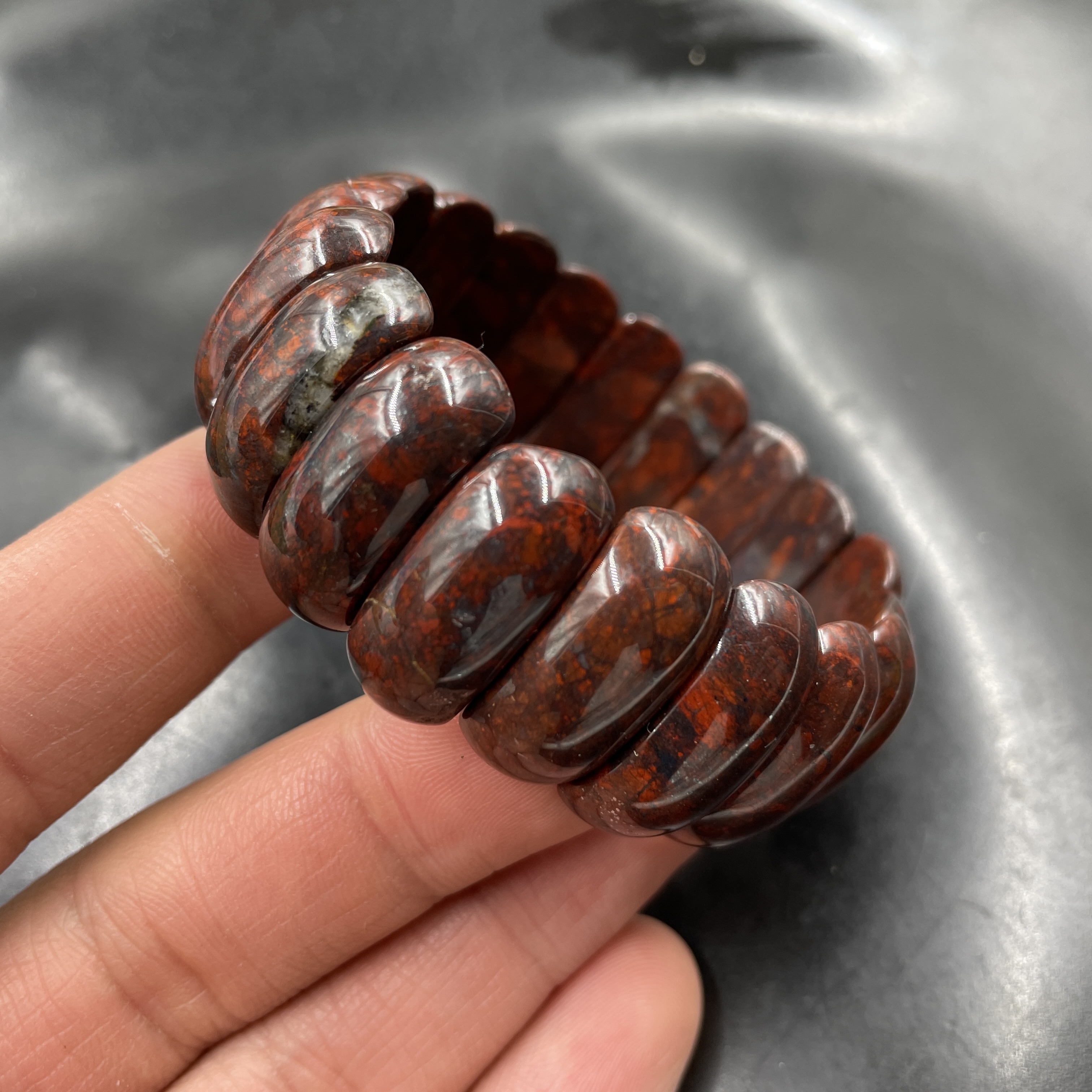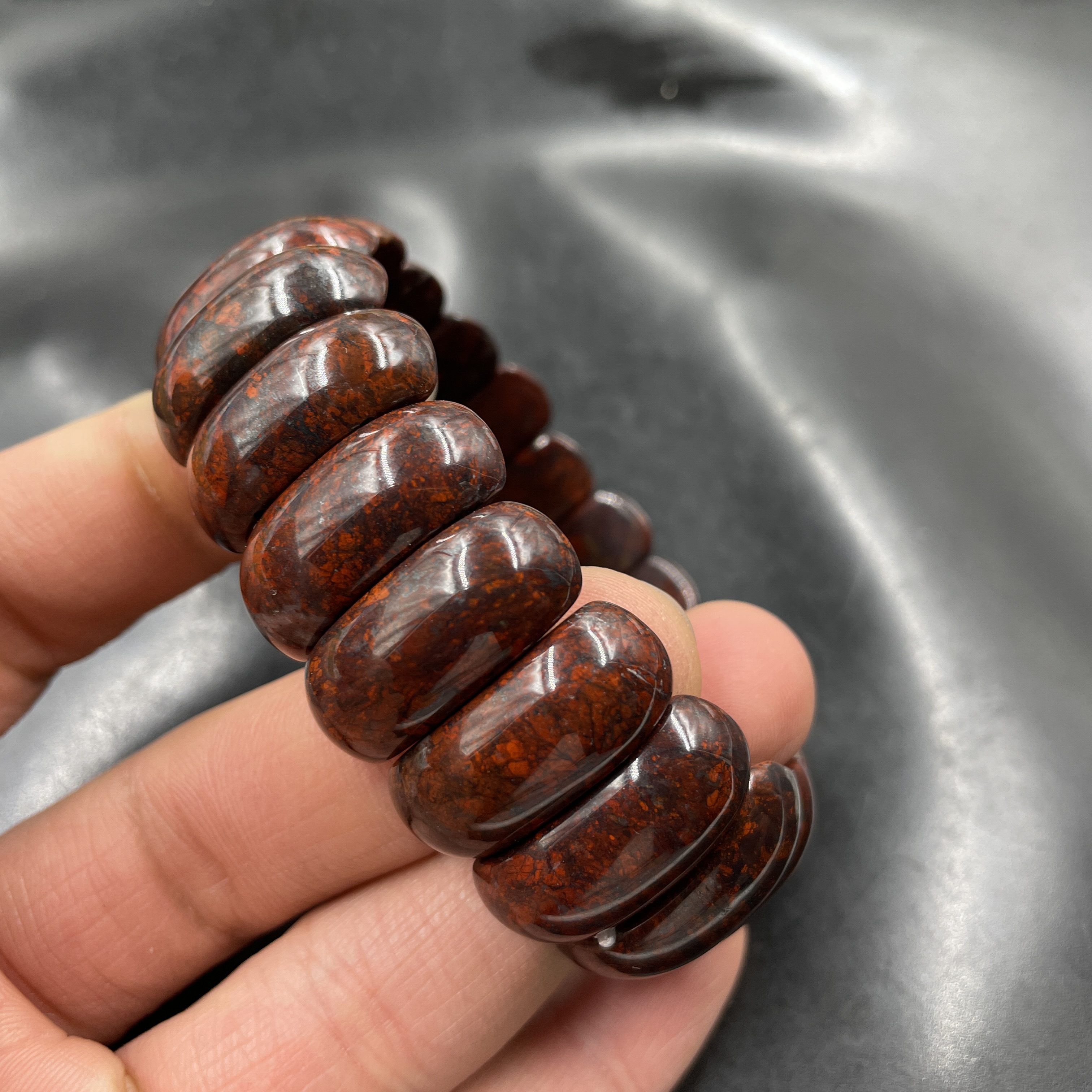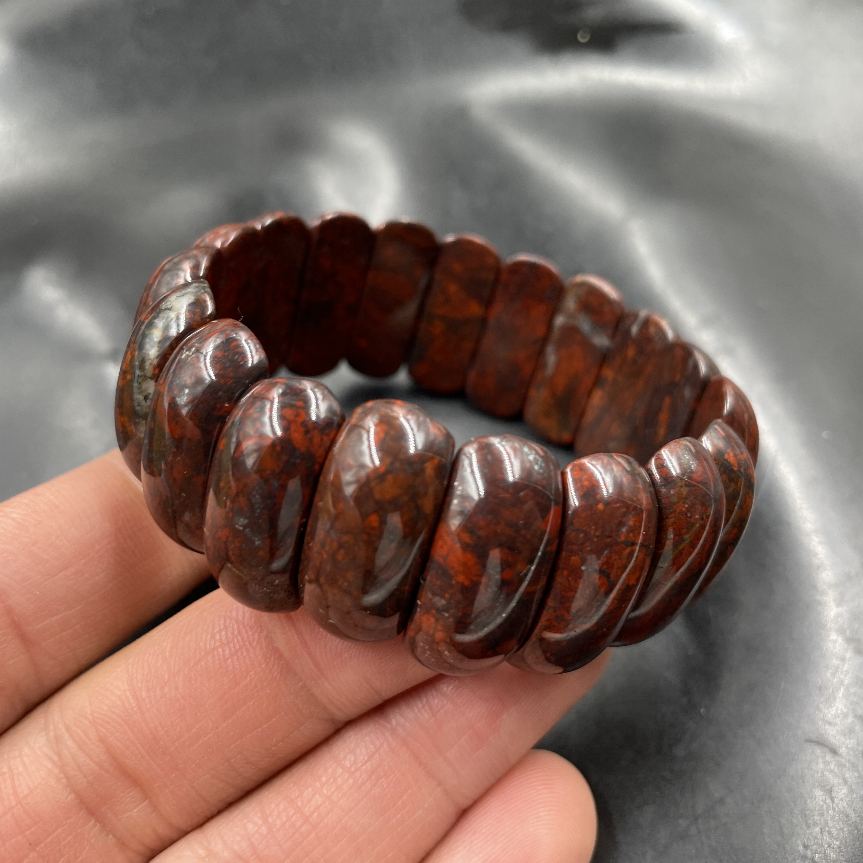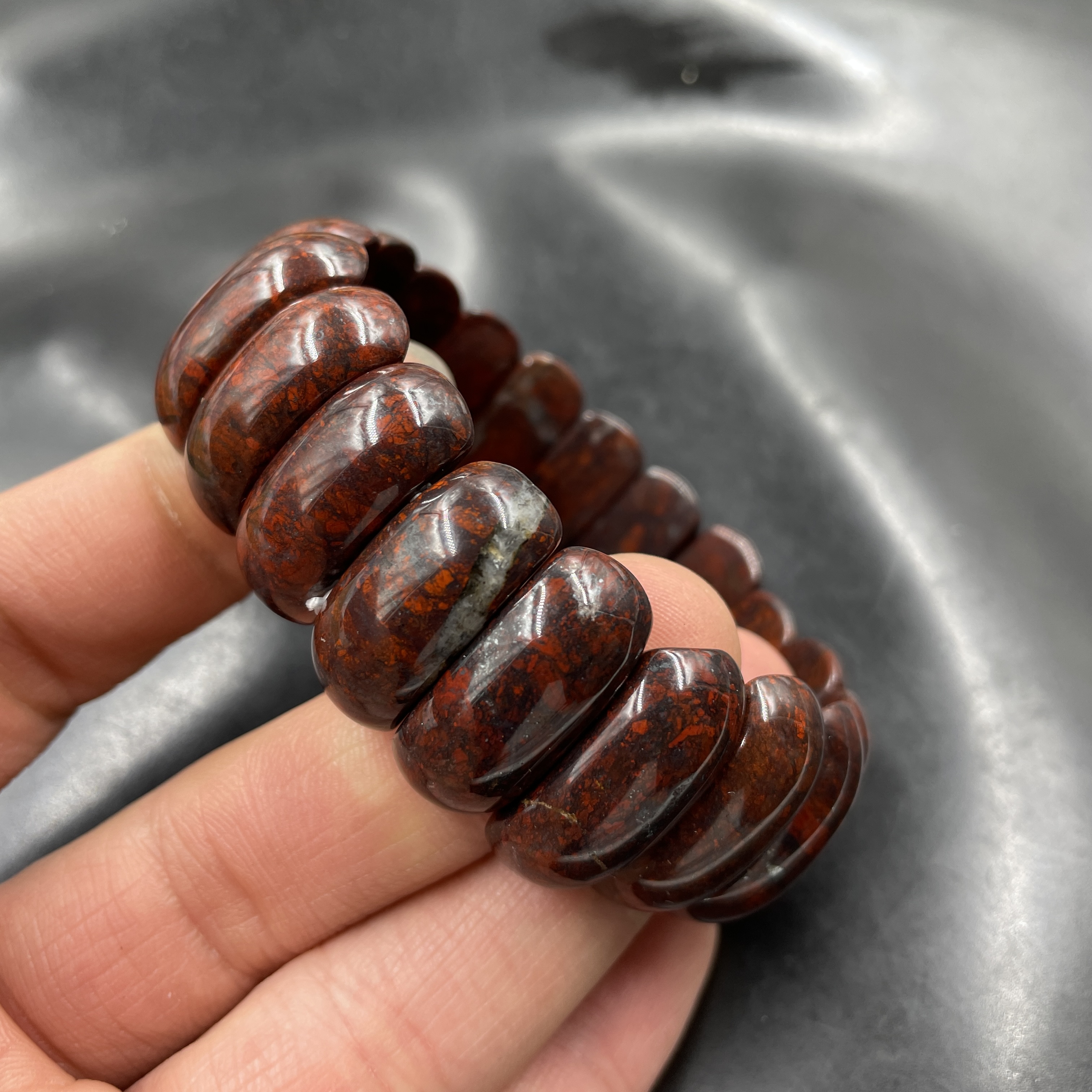四海玉器 新疆红伊丁手排 手链 男女款宽版鸡血石鸡血玉手排 手串