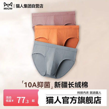 猫人2026新款纯棉男士三角内裤新疆棉10A抑菌底裆透气舒适短裤头