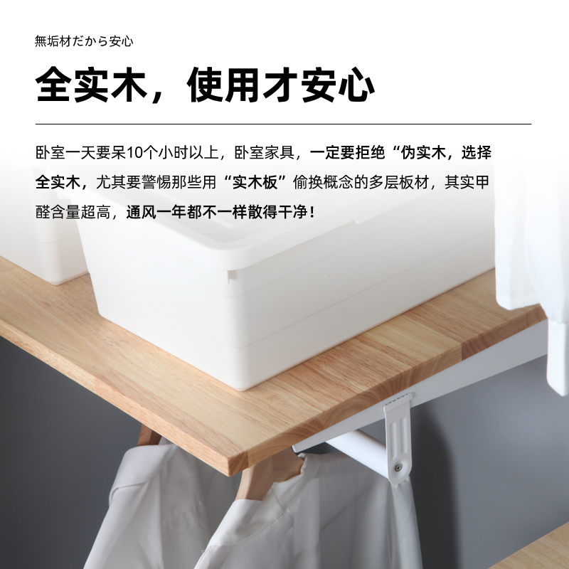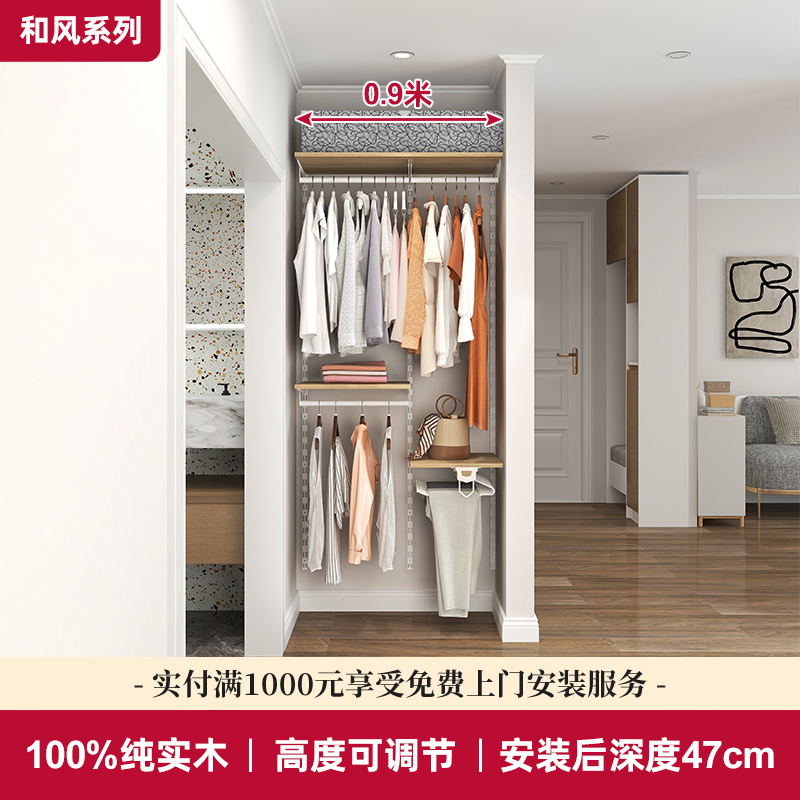 铂耐日式实木g衣帽间砌墙衣架衣柜家用卧室简易组装收纳柜子0.9米