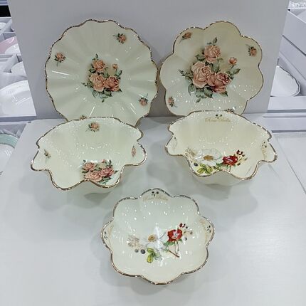 韩国原装女皇玫瑰镶金边陶瓷盘子