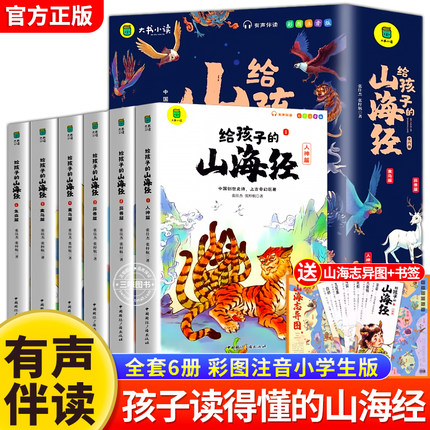 给孩子的山海经全套6册小学生版彩绘注音版原著正版全集儿童读的懂读得懂异兽录带拼音的一二年级三年级课外阅读书籍青少年版