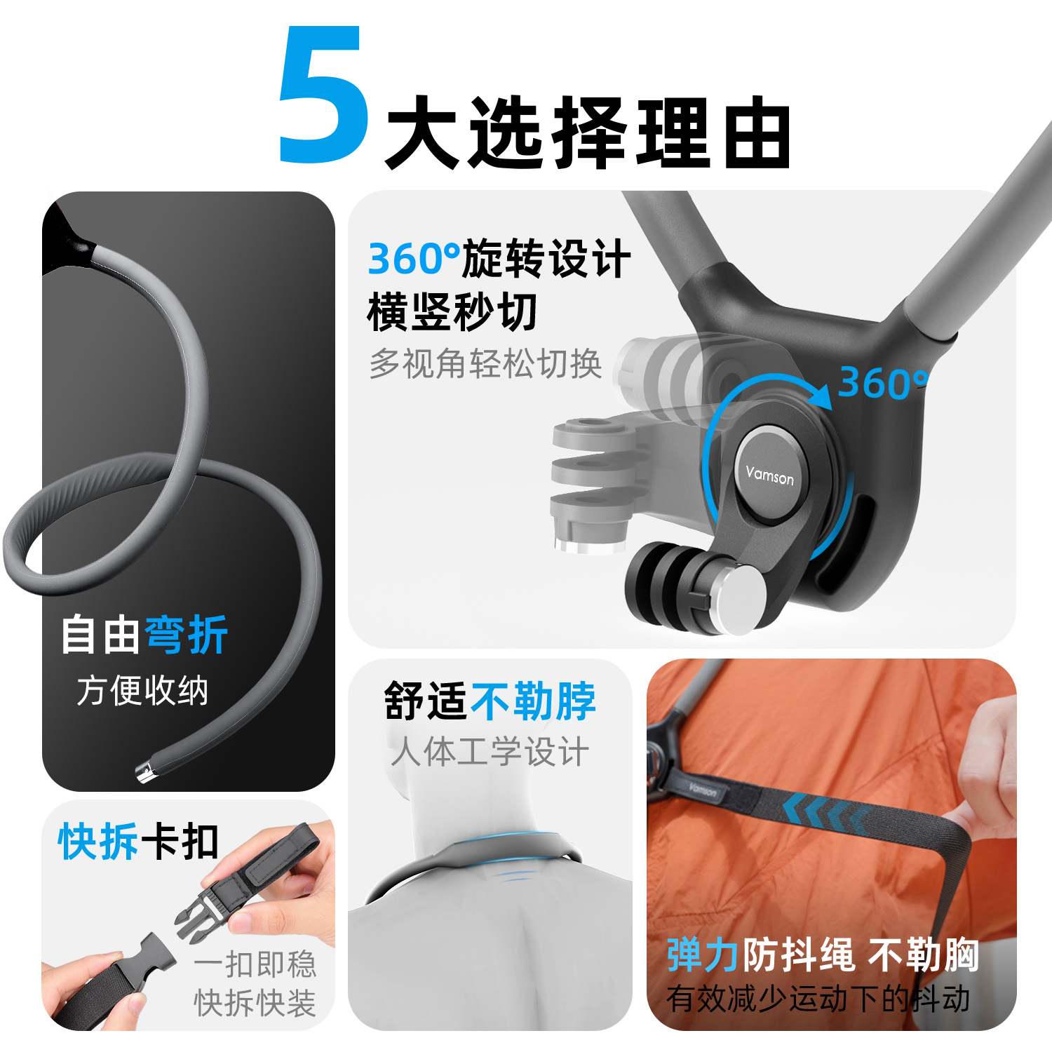 运动相机胸前固定横竖拍旋转挂脖支架适用DJI大疆Action5Pro/4/3