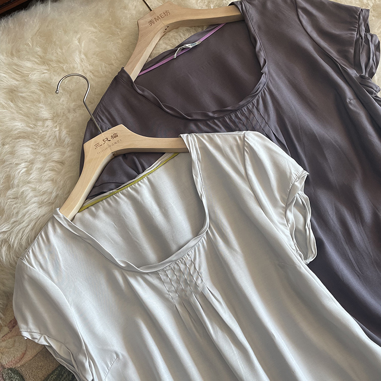 英国BD!28姆米斜纹真丝T恤 圆领桑蚕丝短袖纯色T恤掐褶衬衫女夏