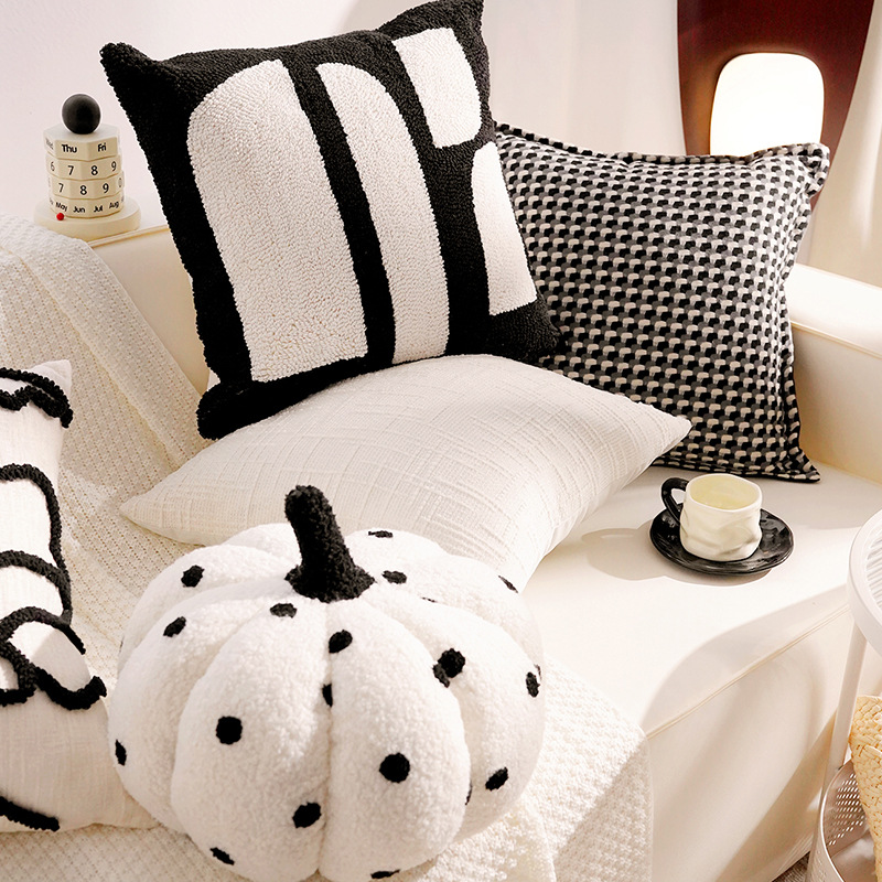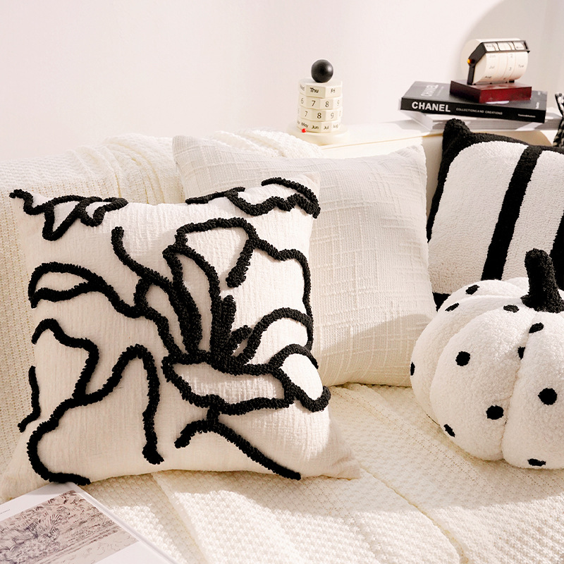 轻奢法式感黑白客厅沙发抱枕奶油风飘窗靠枕民族床头靠垫抱枕