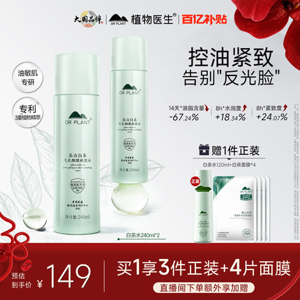 【百亿补贴】植物医生白茶控油爽肤水补水保湿收缩毛孔官方旗舰店