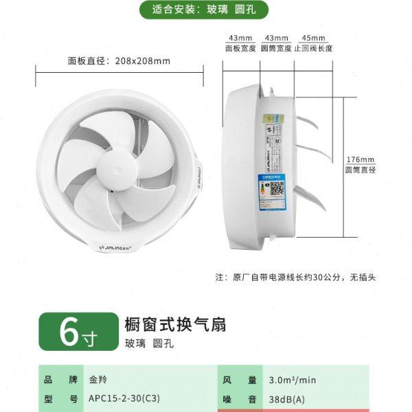 金羚排气扇卫生间换气扇墙壁式玻璃窗式6寸抽风机排风扇强力静音