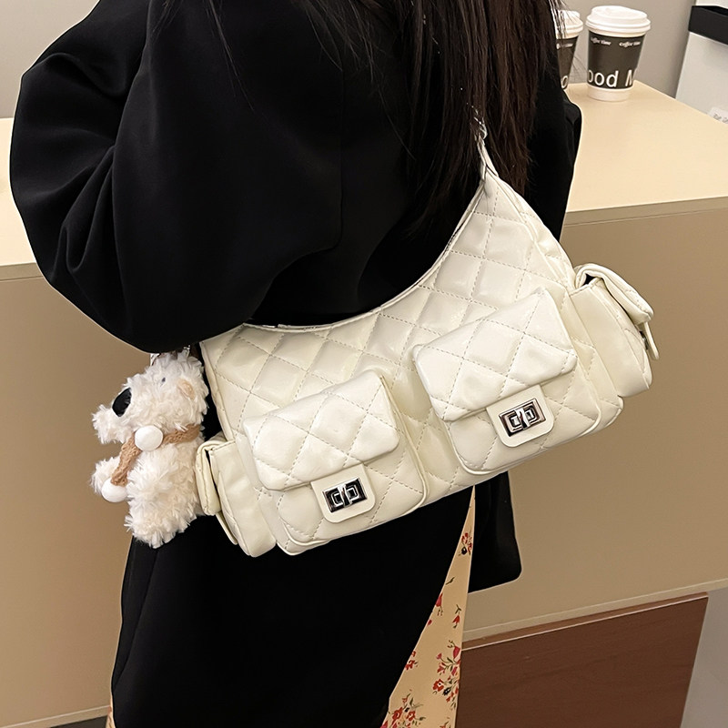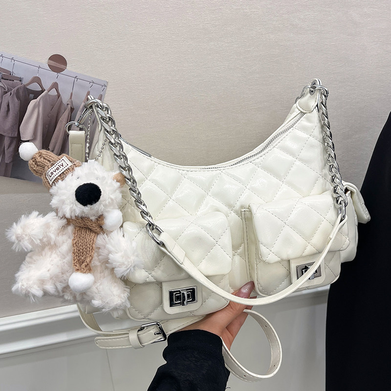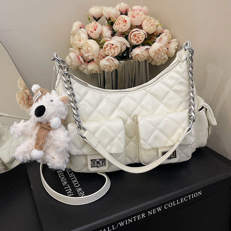 小香风菱格链条时尚单肩腋下包包女2025夏季新款高级感斜挎饺子包