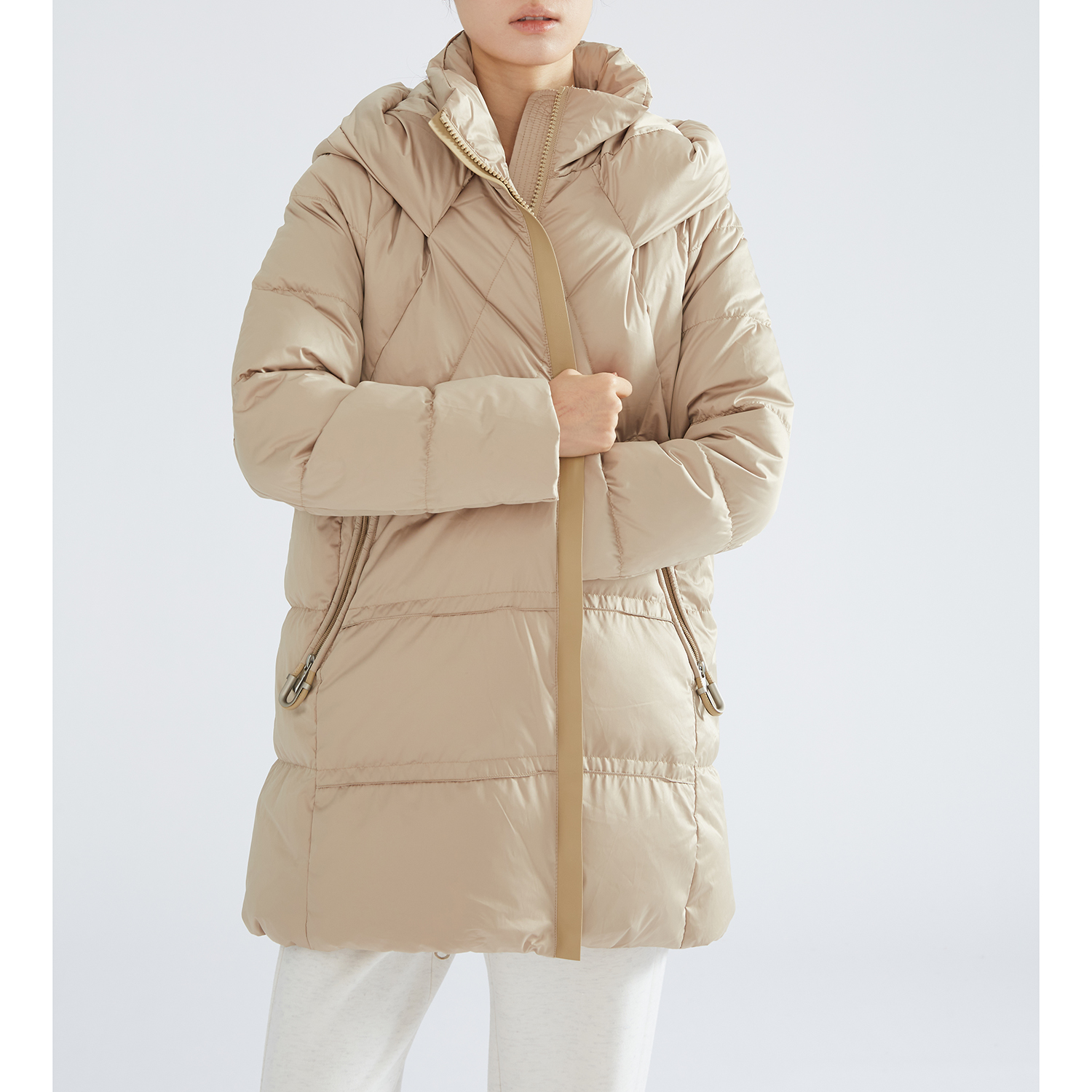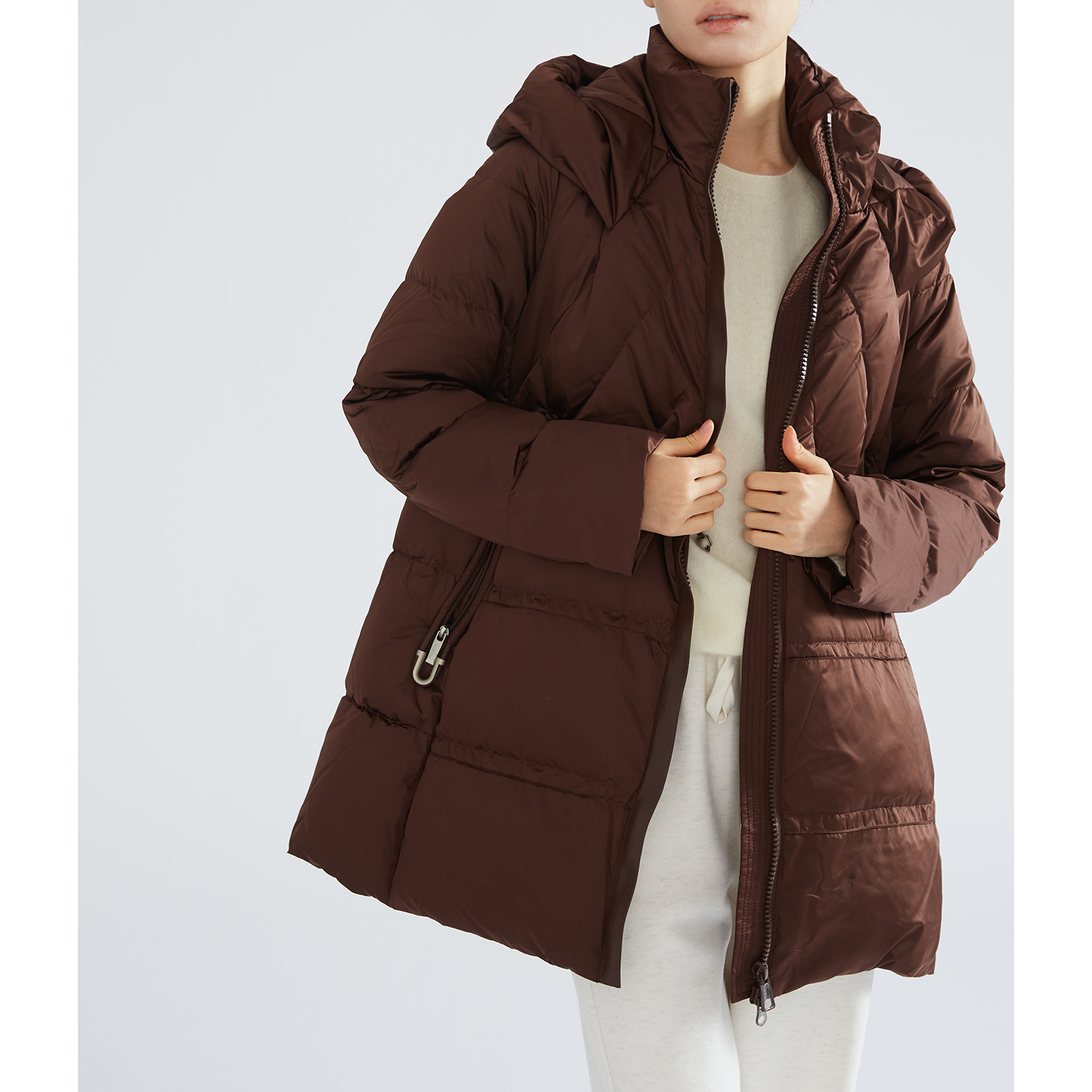 一丝牵 新国标90白鸭绒中长款羽绒服 连帽可拆加厚宽松保暖外套冬