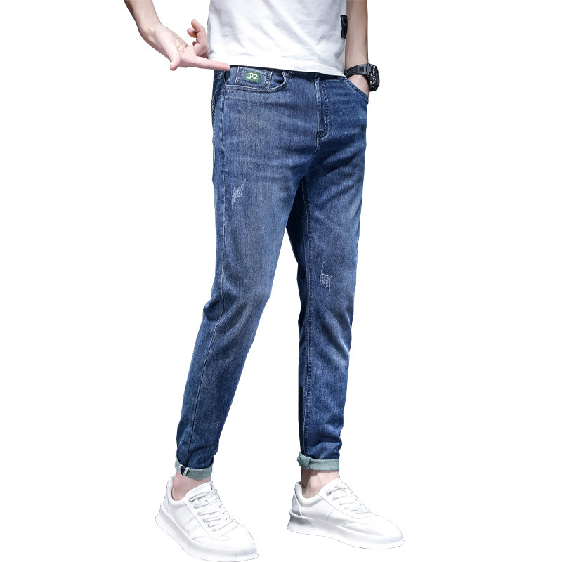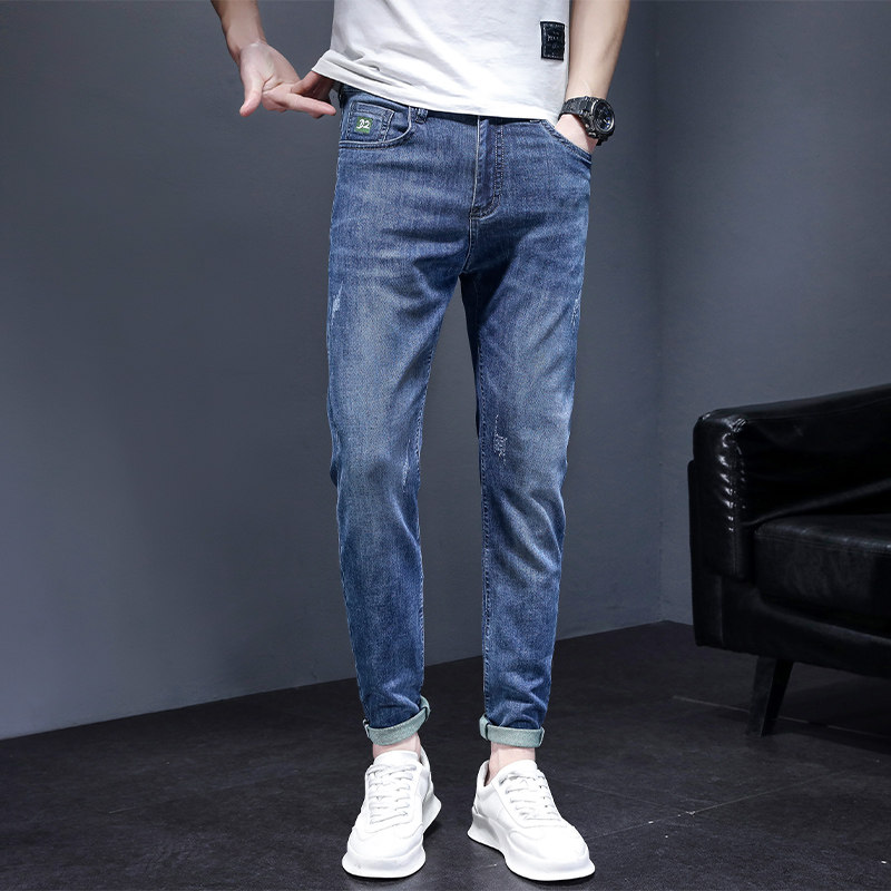 冰丝牛仔裤男款修身小脚九分休闲夏季超薄款2023新款男士夏天裤子