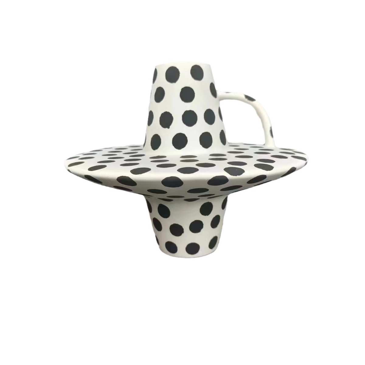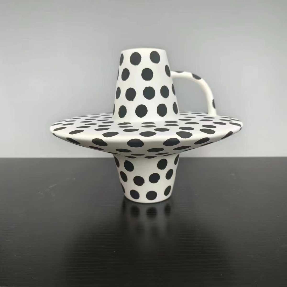 北欧简约风黑白点陶瓷花瓶样板间民宿餐桌奶牛色插花器装饰品摆件