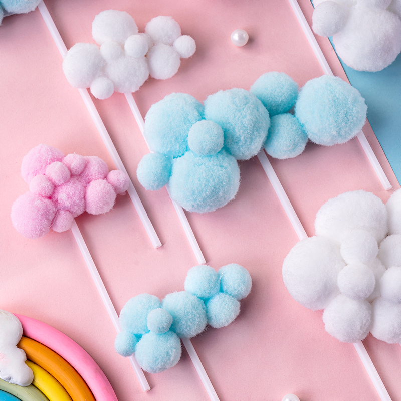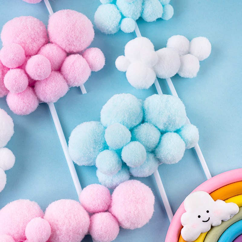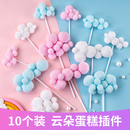 10个装绵绵圆球云朵生日蛋糕装饰摆件网红立体毛球云朵插件包邮