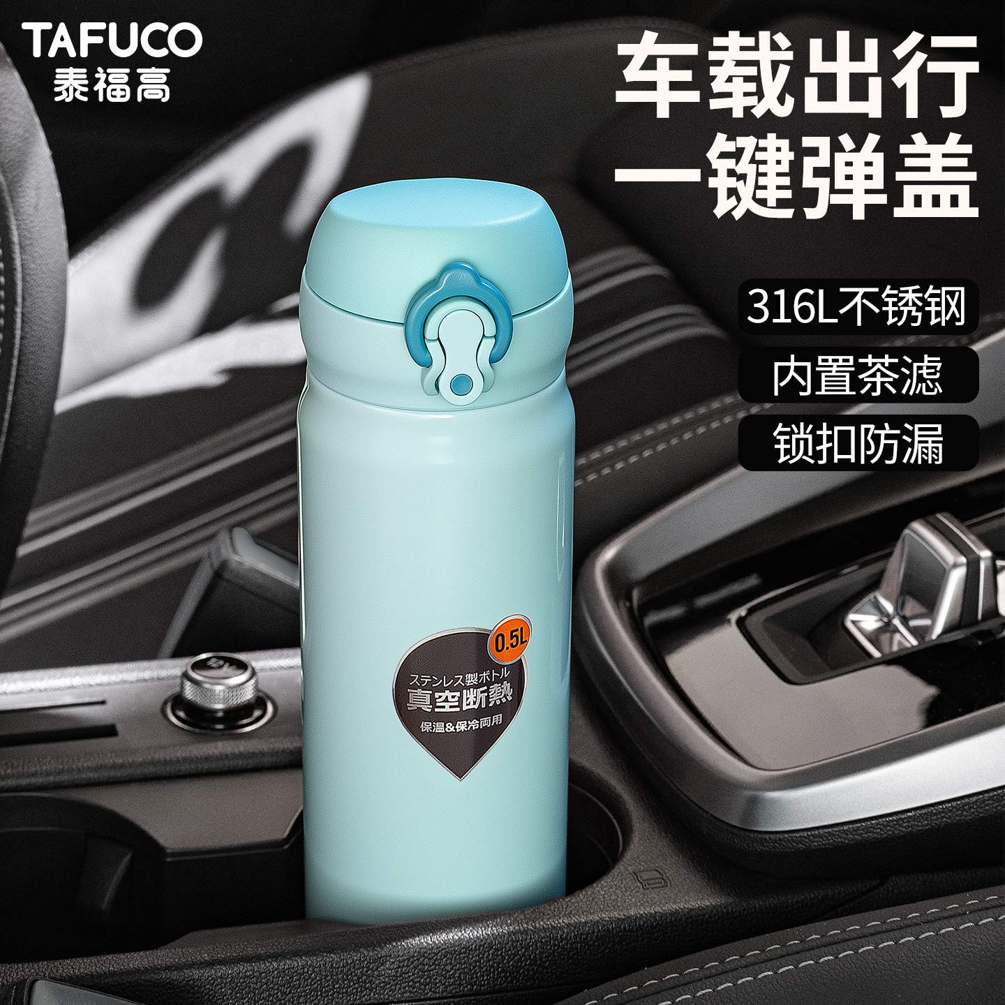 日本泰福高316L不锈钢保温杯冬季车载保温水杯大容量便携高级水杯