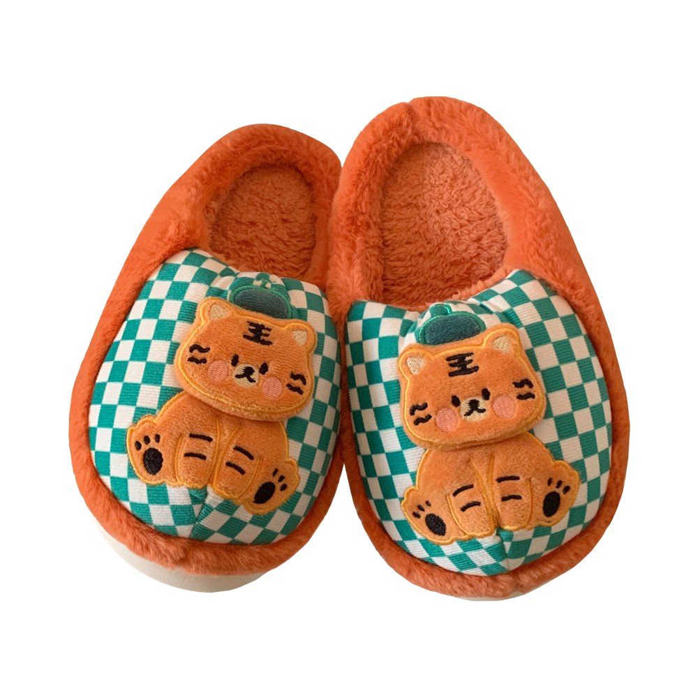 细细条可爱小老虎保暖棉拖鞋女冬