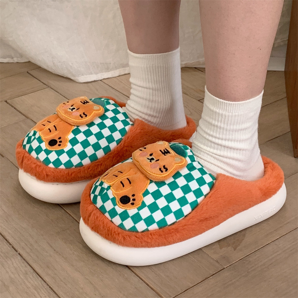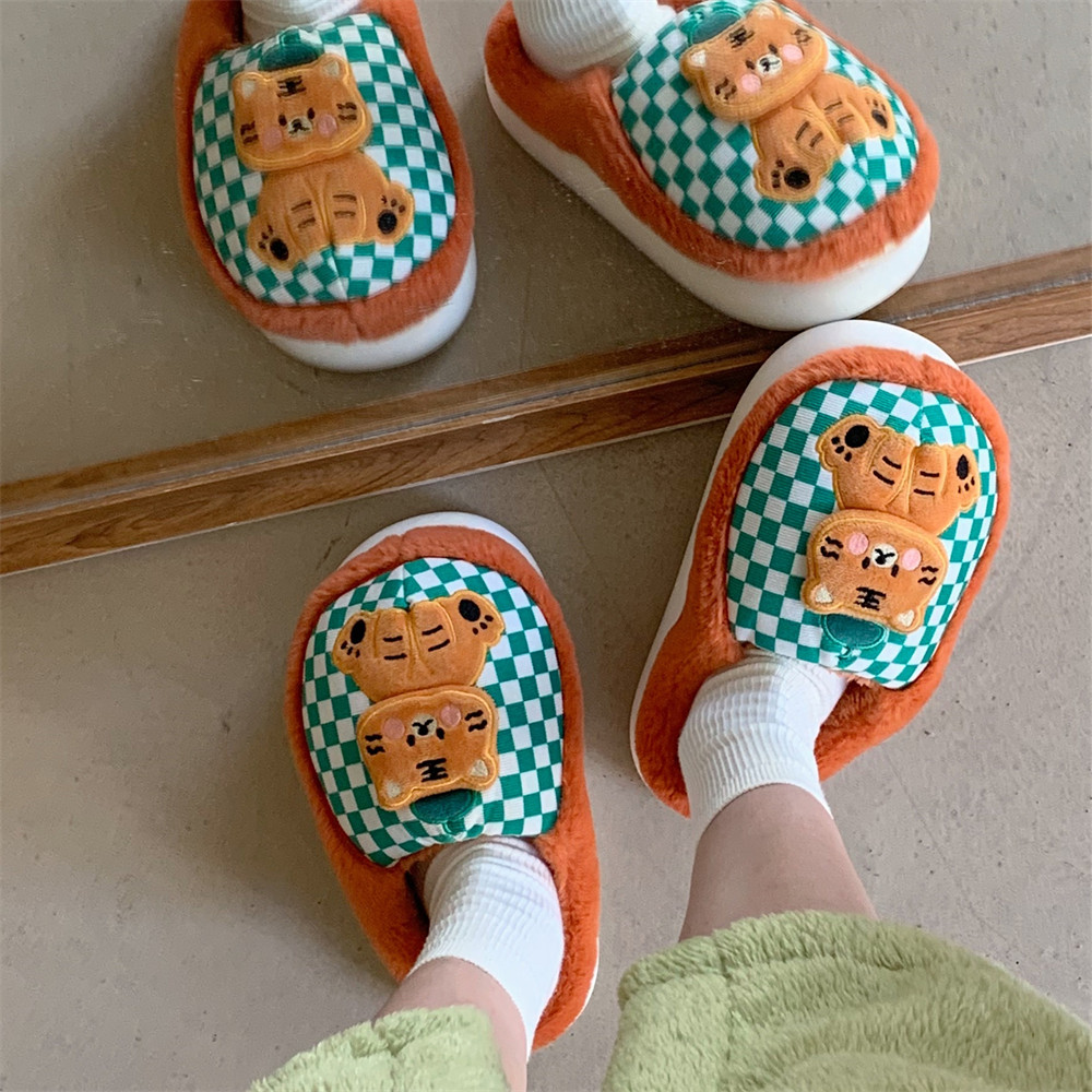 细细条 个性可爱小老虎棉拖鞋女冬季学生室内家用保暖厚底毛绒鞋