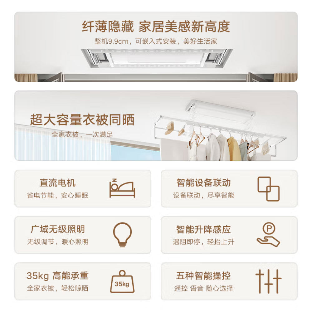小米米家智能晾衣机1S电动晾衣架阳台自动升降照明小爱语音遥控A