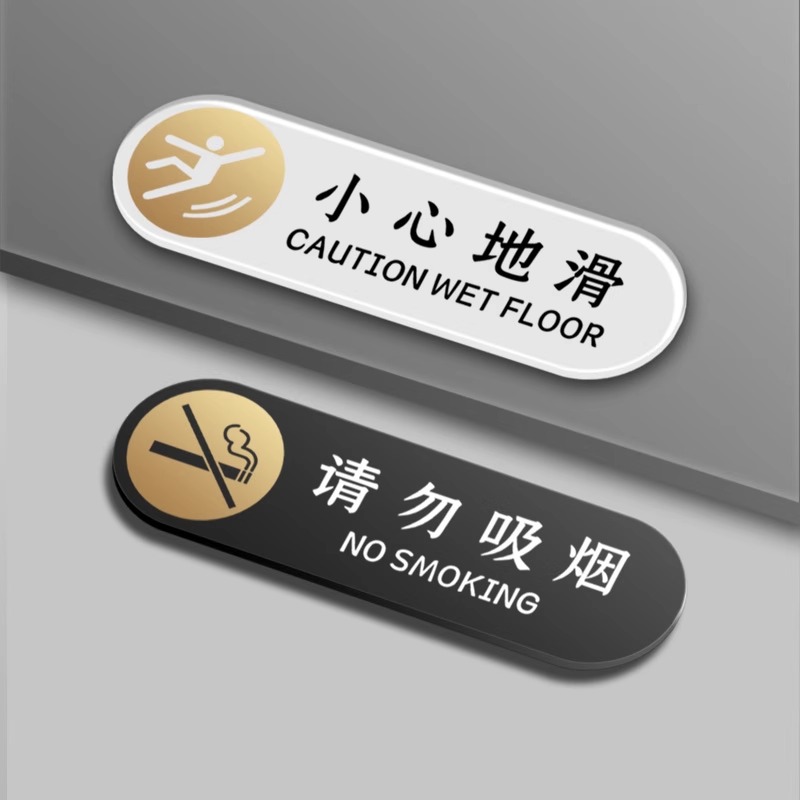 小心地滑温馨提示牌亚克力标识牌男女洗手间门牌定制卫生间小心台阶房间警示牌指示牌酒店民宿禁止吸烟牌订制