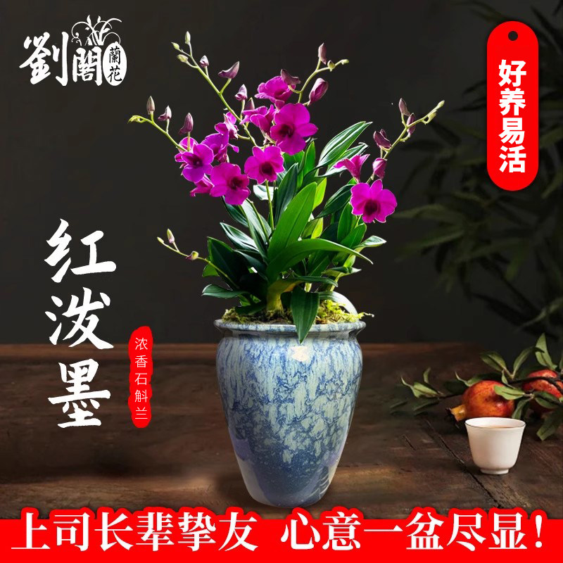 双色泼墨香水石斛兰花苗现带多花桌面精致盆栽好养花卉绿植