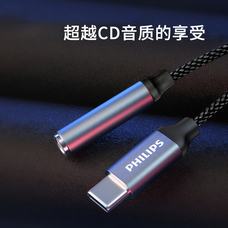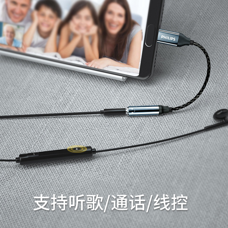 飞利浦typec耳机转接头DAC线tpc安卓3.5mm接口HiFi转换器适用华为小米三星note10/S20魅族16s手机ipadpro平板